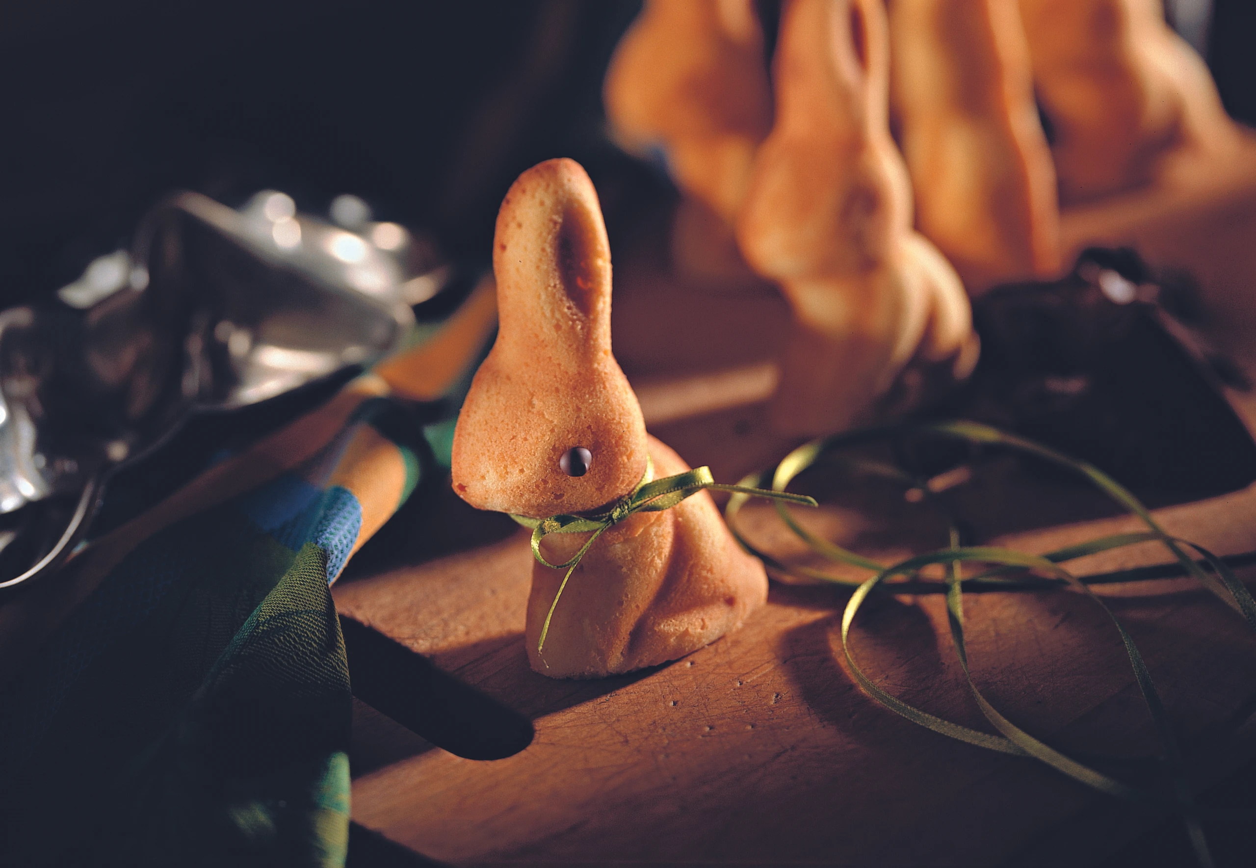 Alle Zutaten sollten küchenwarm sein, Eier und Butter rechtzeitig aus dem Kühlschrank nehmen. Backrohr auf 170 °C vorheizen. Kleine Hasen- oder Lammformen (Inhalt je 1/8 l) mit Butter ausstreichen und mit Mehl ausstreuen.