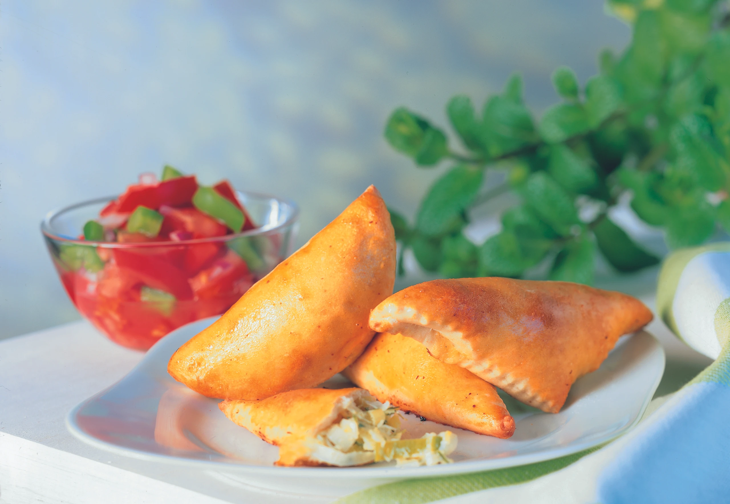 Gebackene Tascherl mit Lauch-Schafkäsefülle