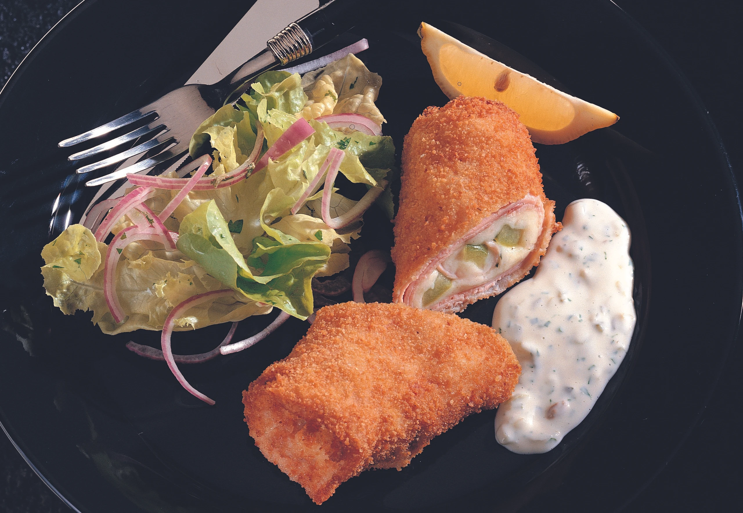 Gebackene Schinkenrollen mit Sauce tartare