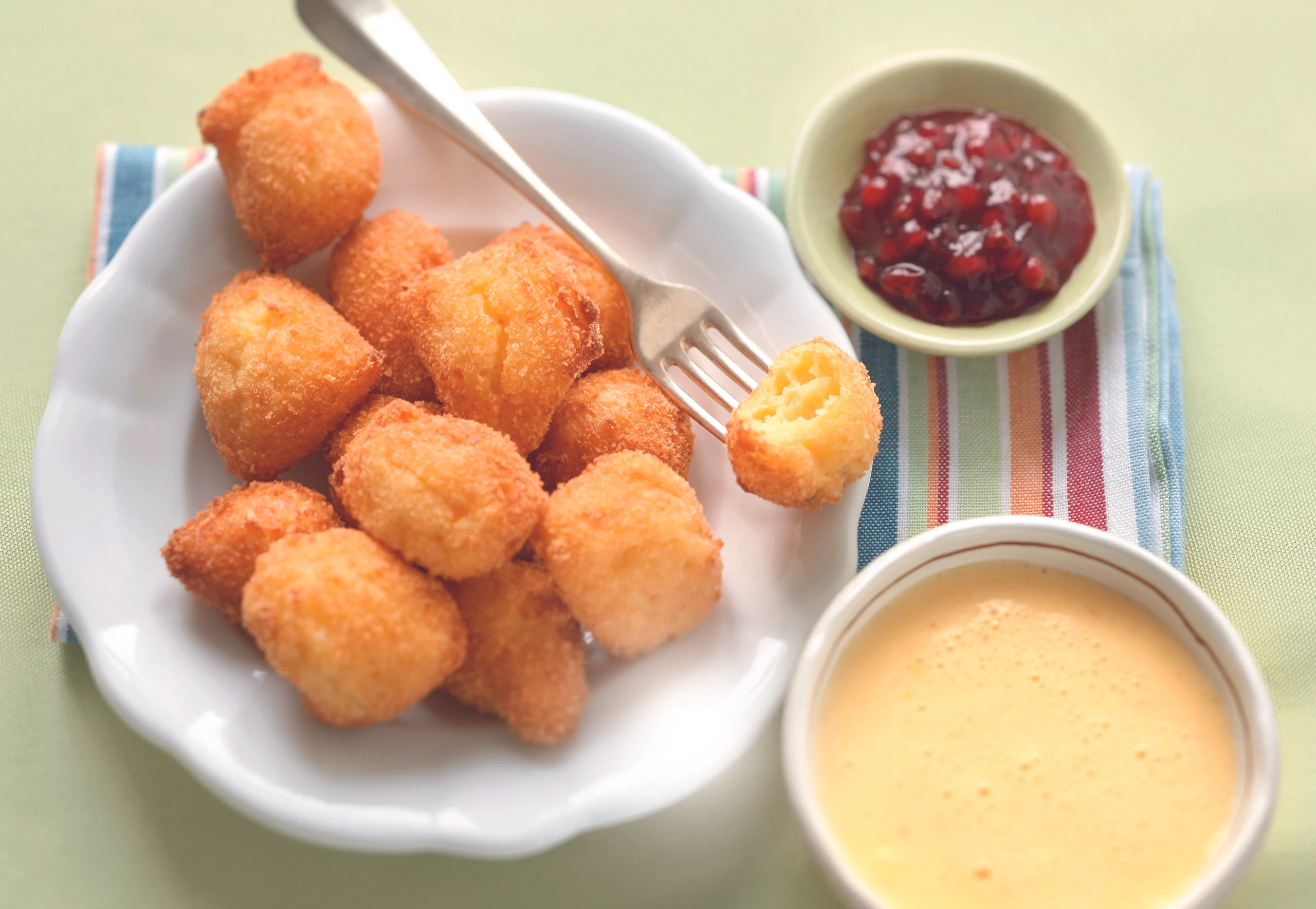 Ca. 3 Finger hoch Öl erhitzen. Aus dem Teig Nockerl ausstechen, in den Bröseln wenden und im Öl backen (in 2 Arbeitsgängen). Nockerl herausheben, auf Küchenpapier abtropfen lassen, mit Sauce und Preiselbeeren servieren.