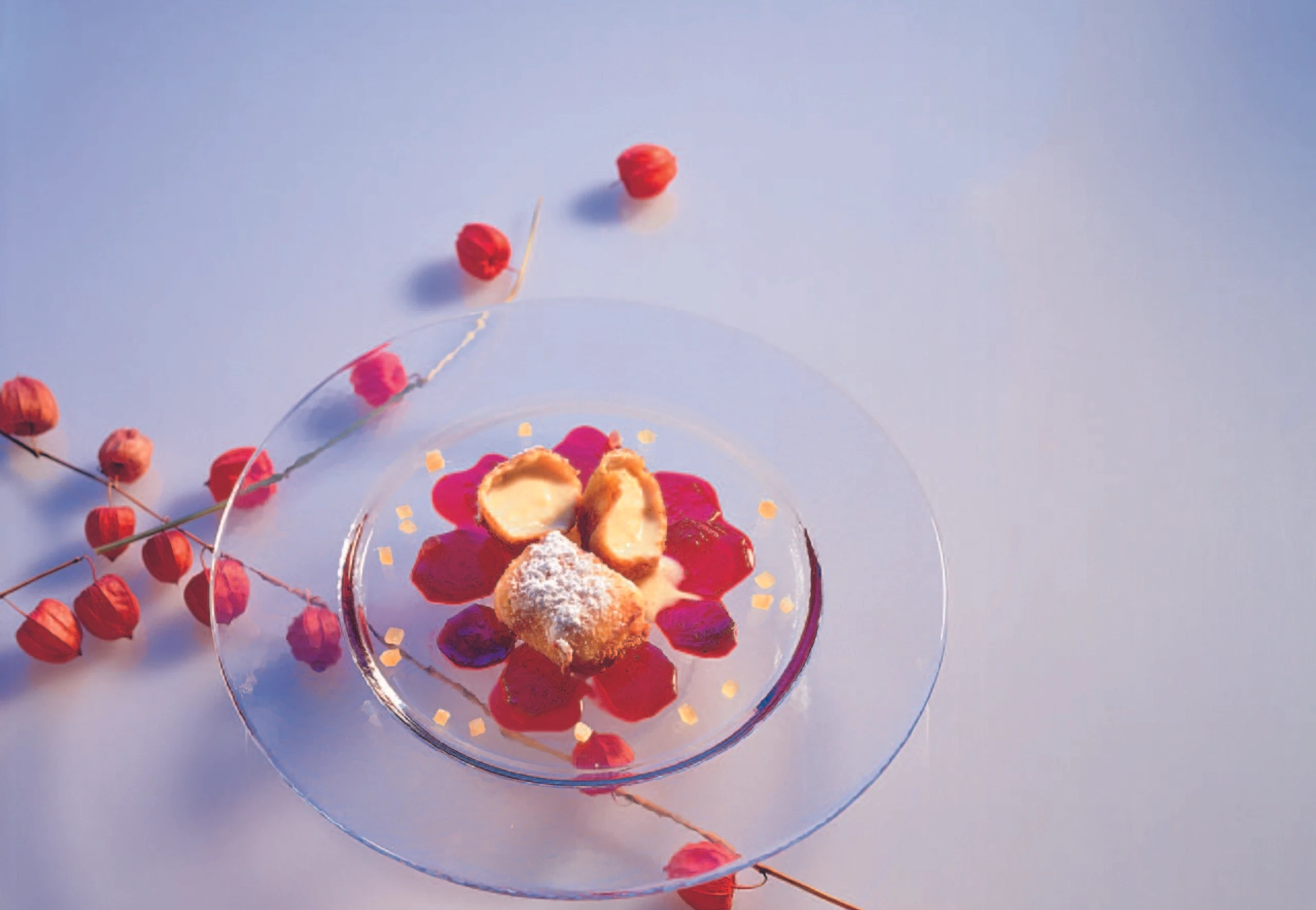 Gebackene Vanillemilch mit Rote-Rüben-Scheiben