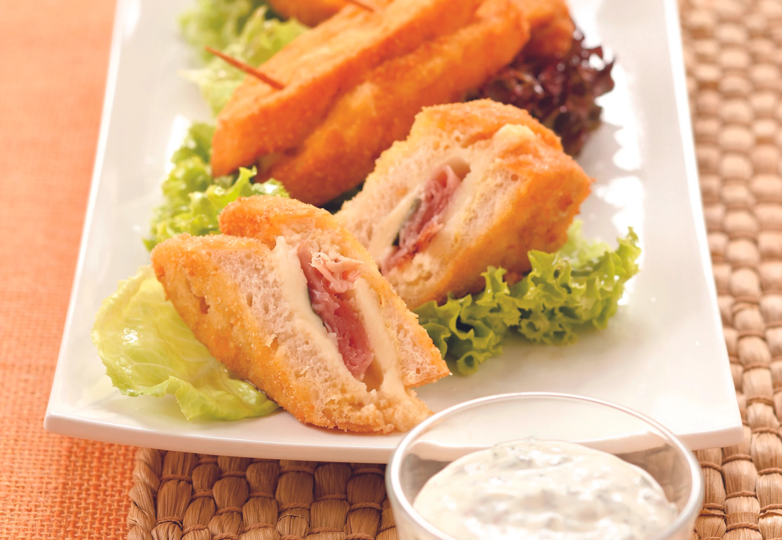 Ca. 2 Finger hoch Öl erhitzen. Brote darin backen, abtropfen lassen, mit Sauce servieren.
