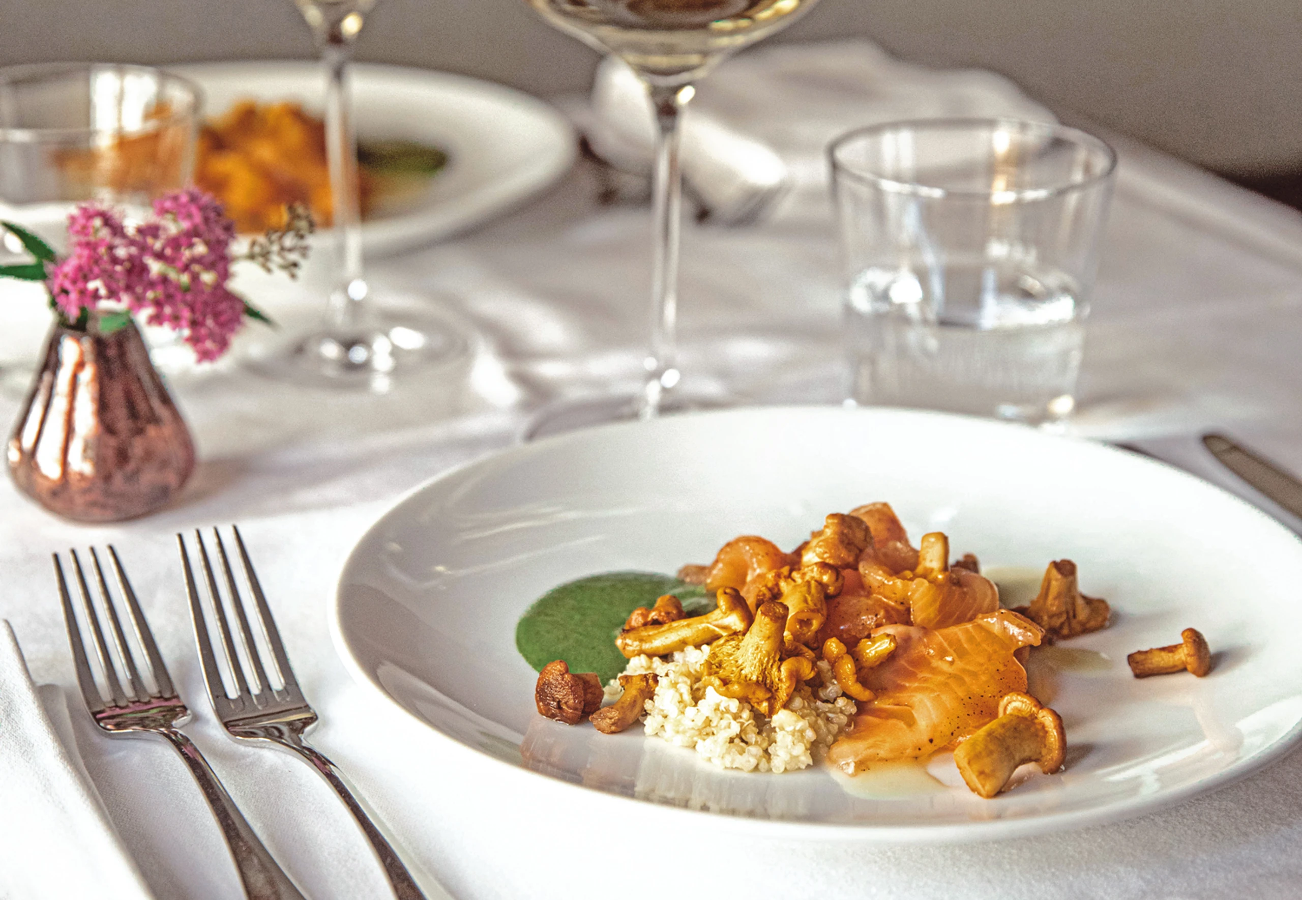 Gebeizter Saibling mit Eierschwammerlsalat und Quinoa