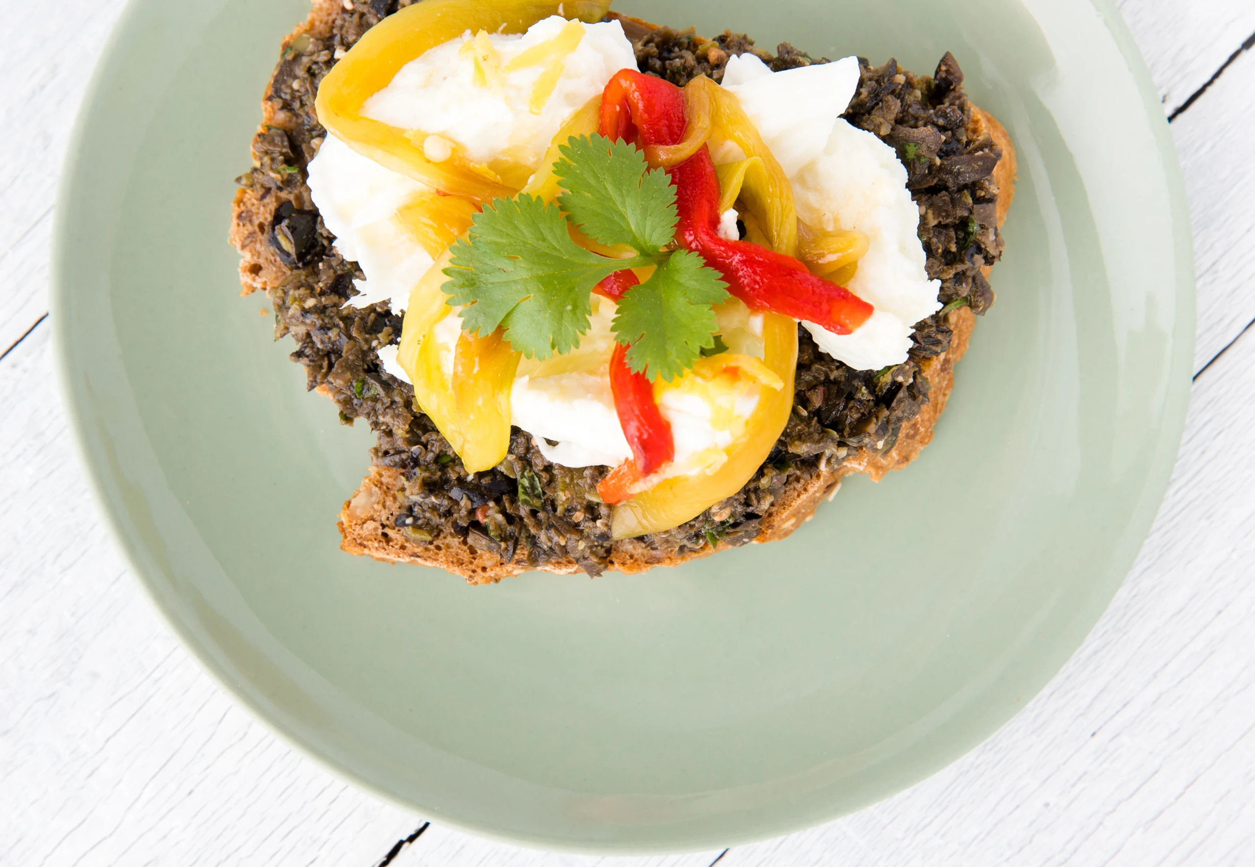 Gebrannte Chilis auf Büffelmozzarella und Oliventapenade