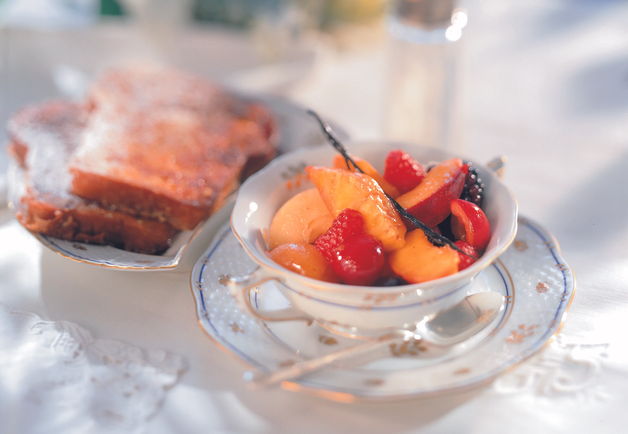 Gebratene Früchte mit karamellisiertem Milchbrot