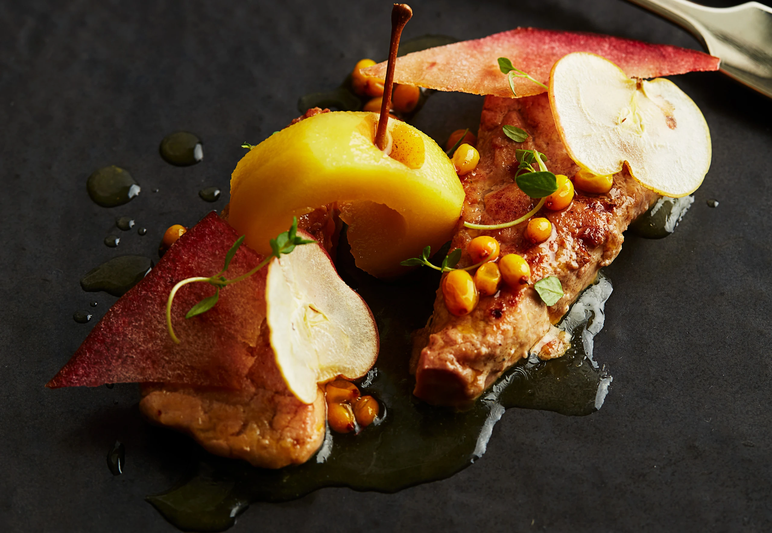 Gebratene Gänseleber mit Sanddorn und Safranäpfeln