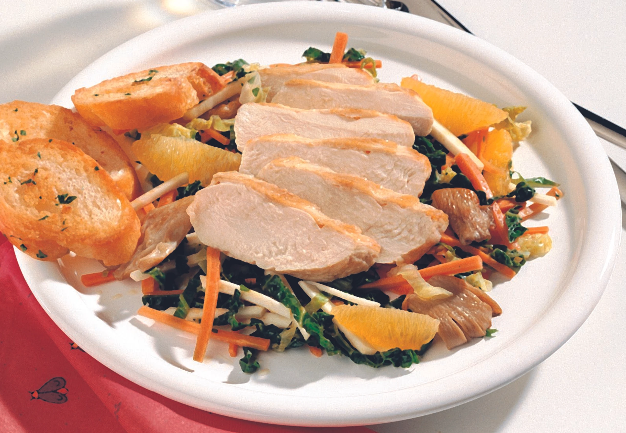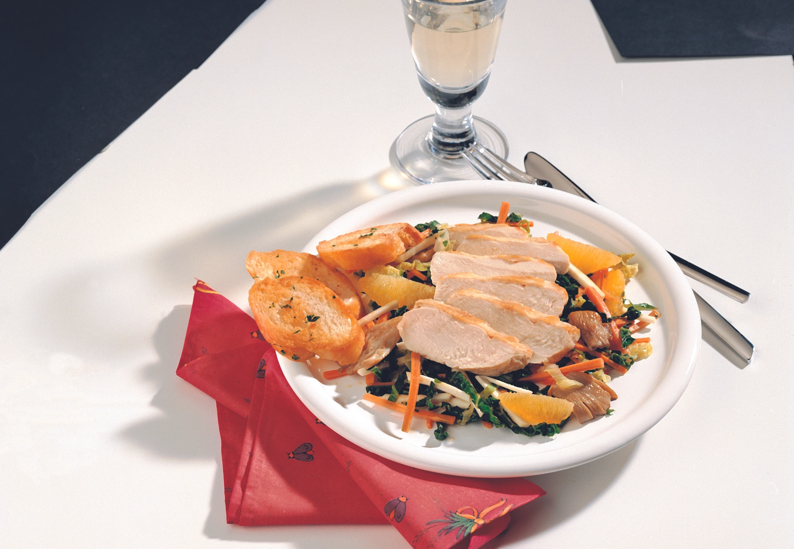 Gebratene Hühnerbrust mit Gemüse-Orangen-Salat