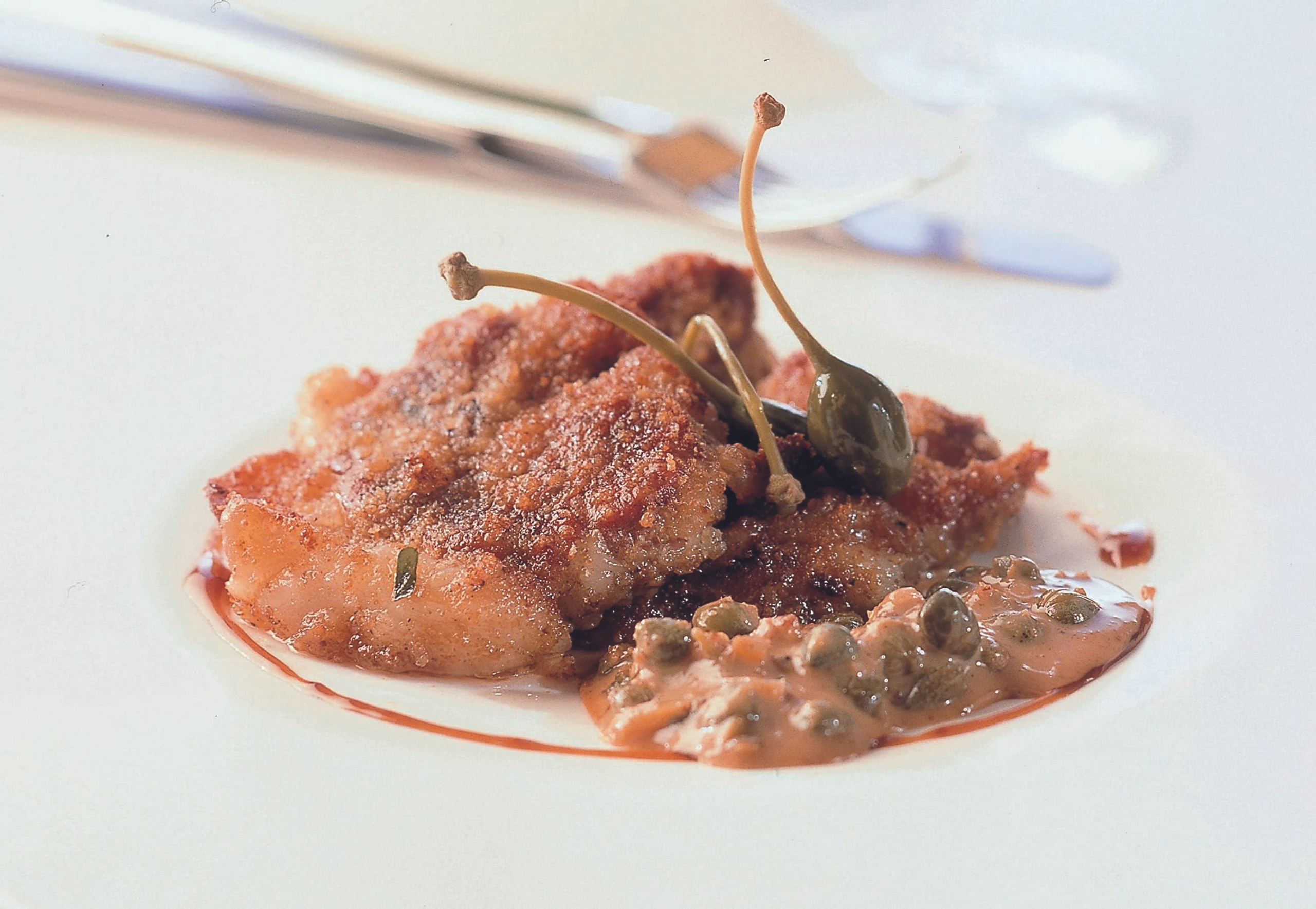 Gebratene Kalbsnierenscheiben mit Kapernsenfsauce