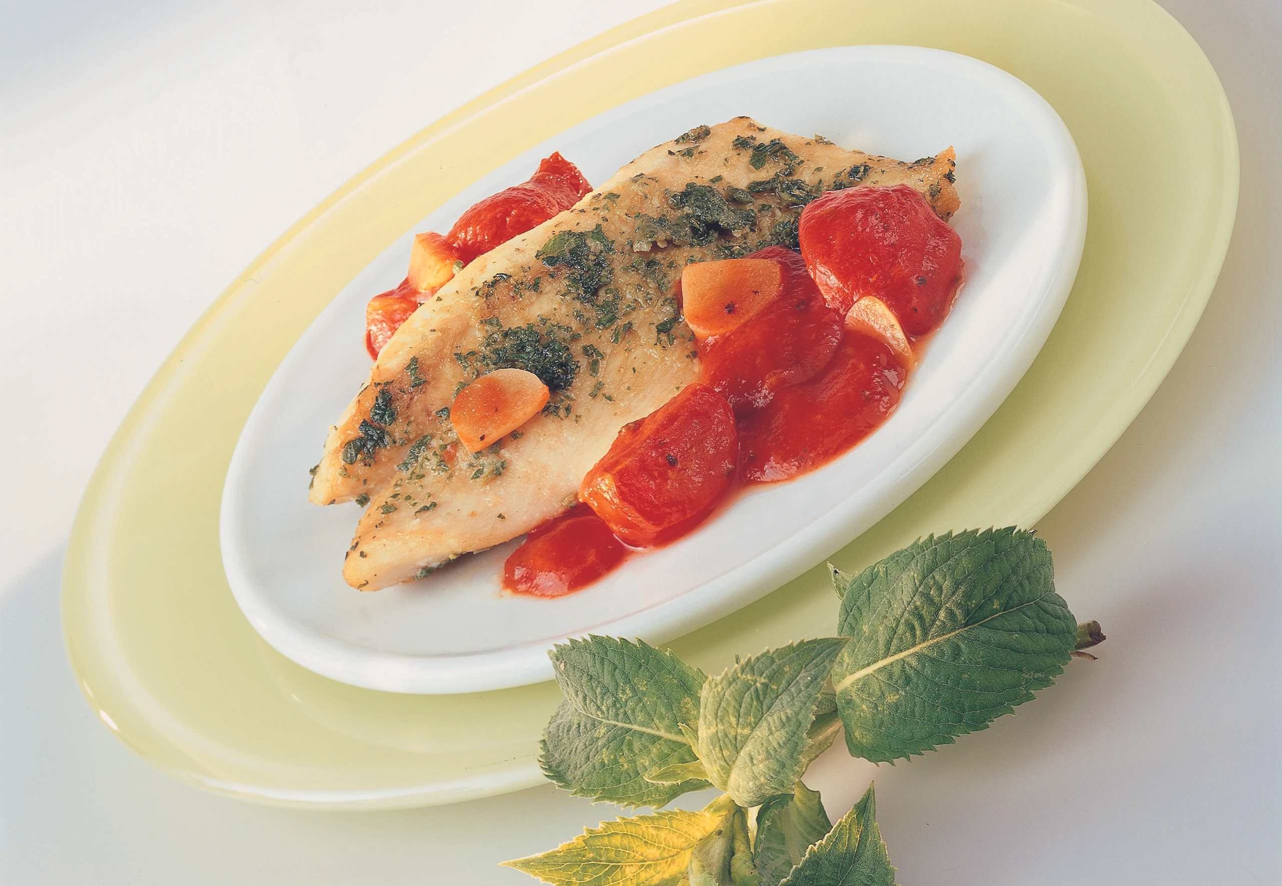 Gebratenes Fischfilet mit Minze und Cocktailparadeisern