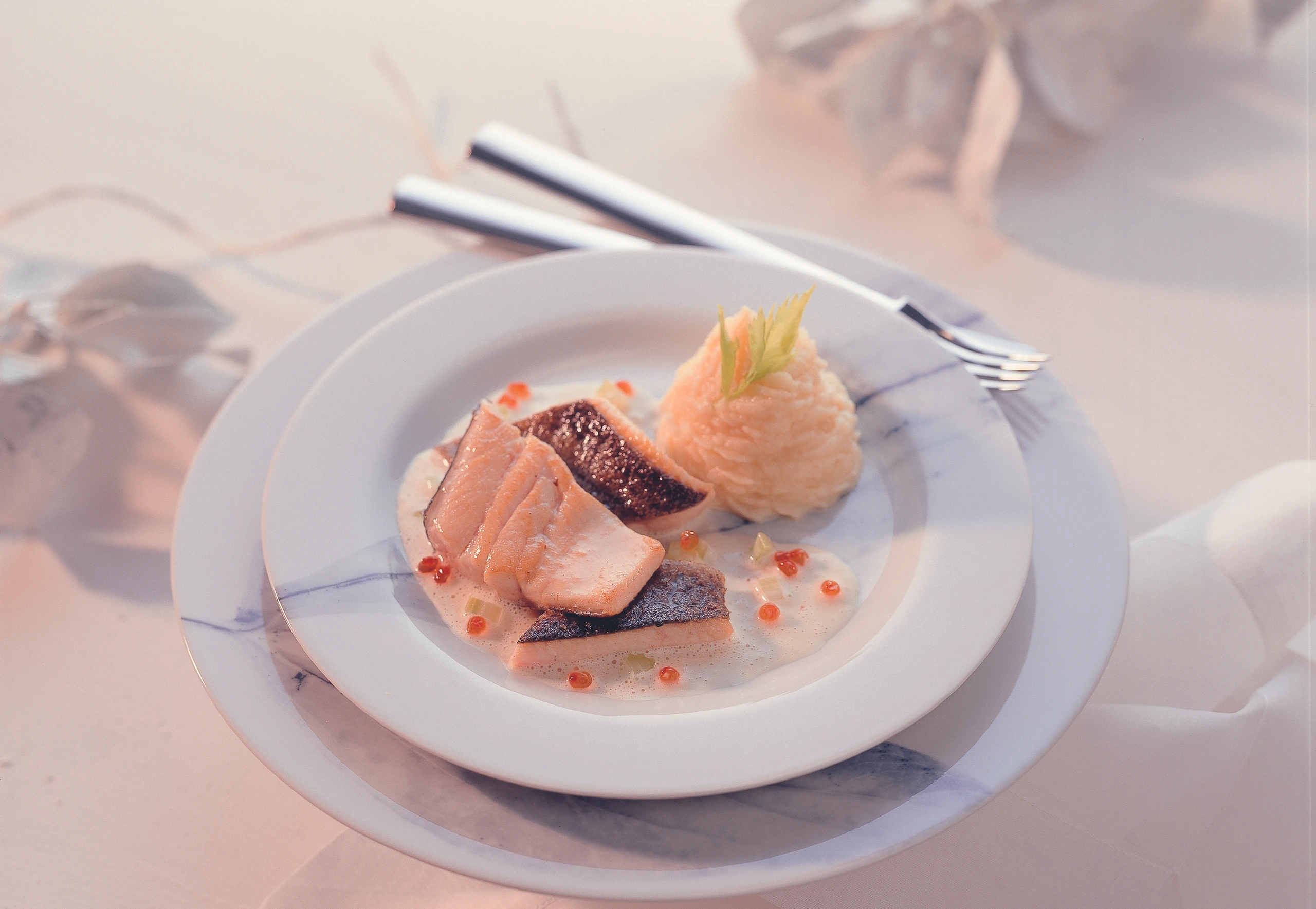 Gebratenes Forellenfilet mit Sellerie-Kaviarsauce
