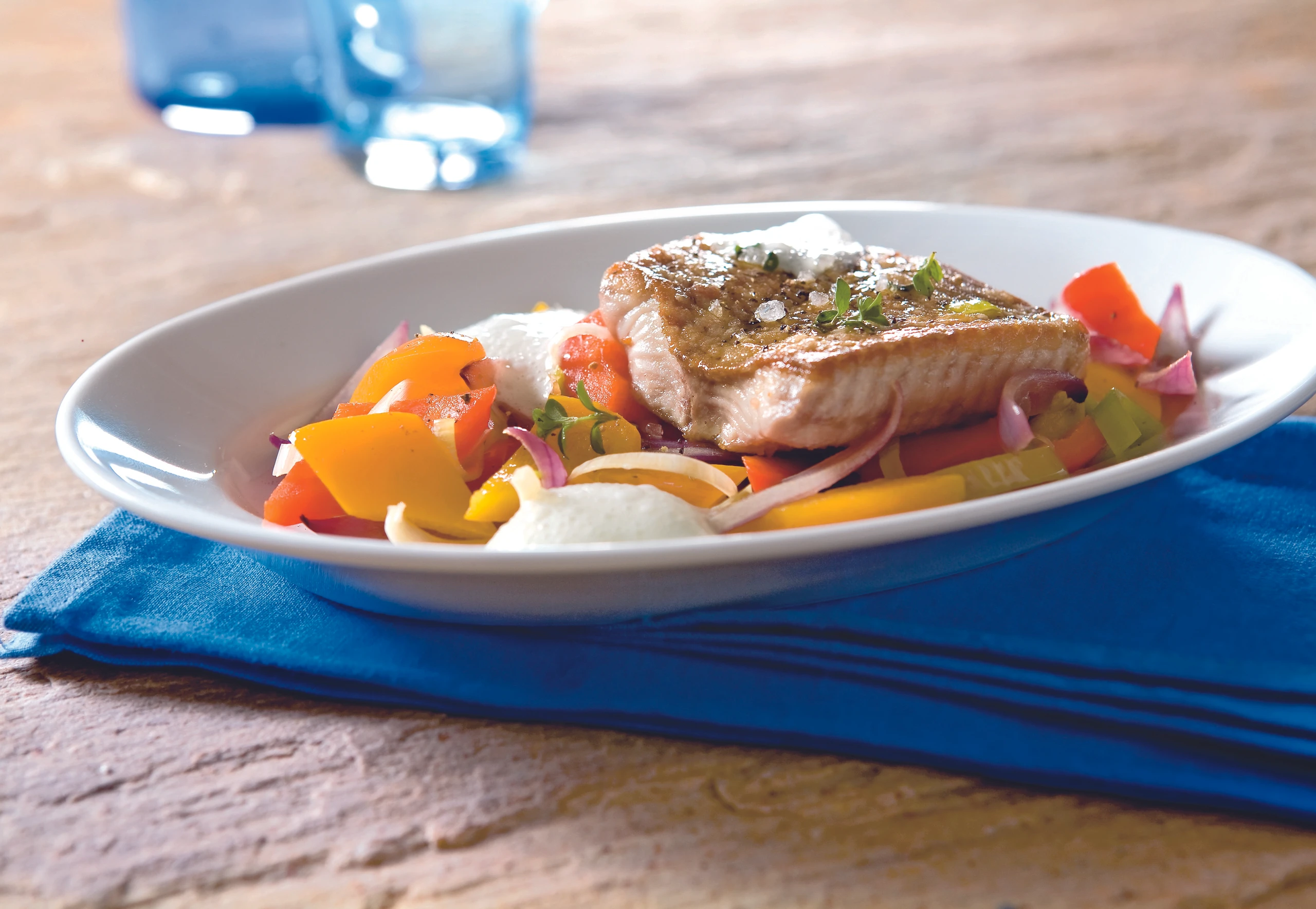 - Obers schlagen, in die Sauce rühren und kurz erwärmen. Wels auf dem Gemüse anrichten und mit der Sauce servieren.