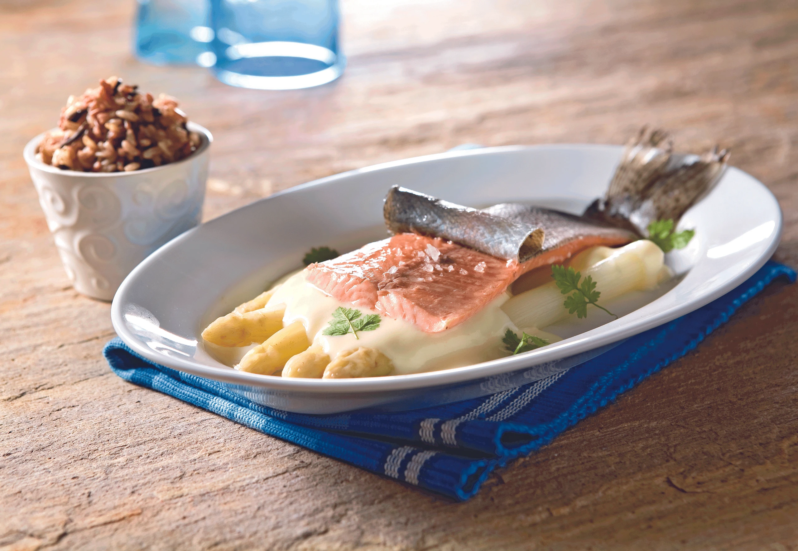 | 4 | Lachsforellenfilet (je 140 g; mit Haut, ohne Gräten) |