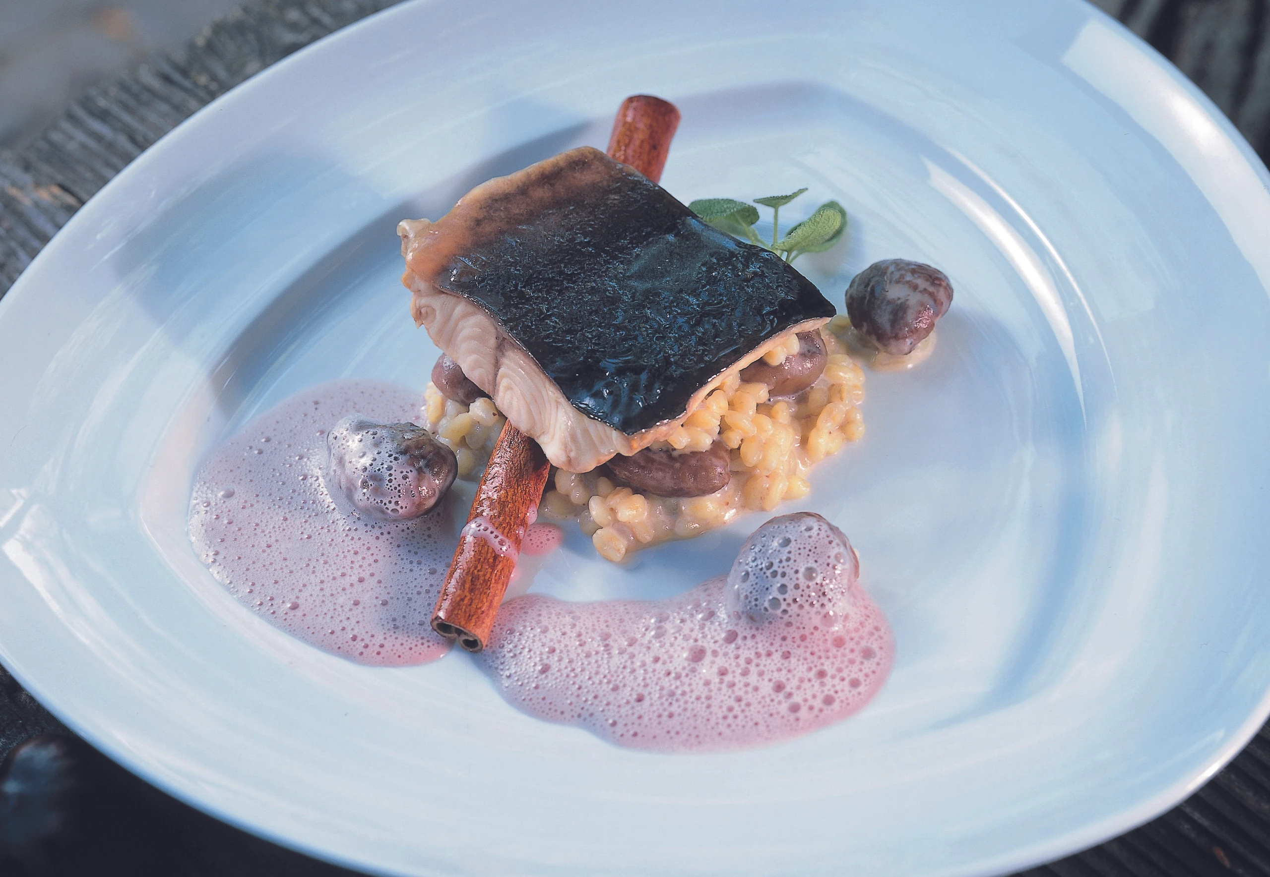 - Maroni, zwei Drittel vom Obers und den Parmesan einrühren, Kastanienreis untermischen. Weizen nochmals aufkochen, salzen, pfeffern und mit dem übrigen Obers verfeinern.