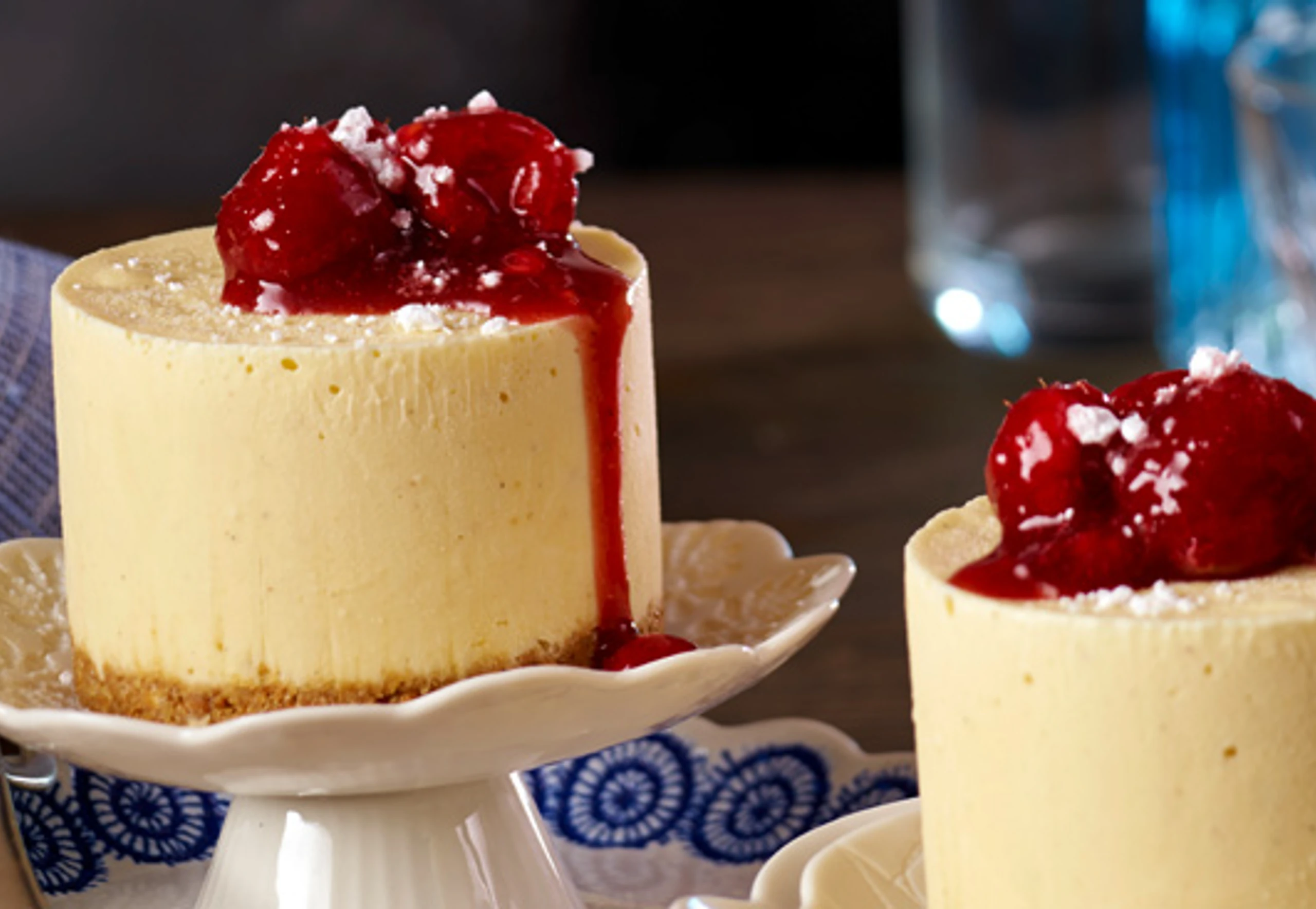 Marmelade erhitzen, Himbeeren zugeben und kurz schwenken. Kuchen behutsam aus den Ringen drücken, mit den Himbeeren anrichten und mit Staubzucker bestreut servieren.