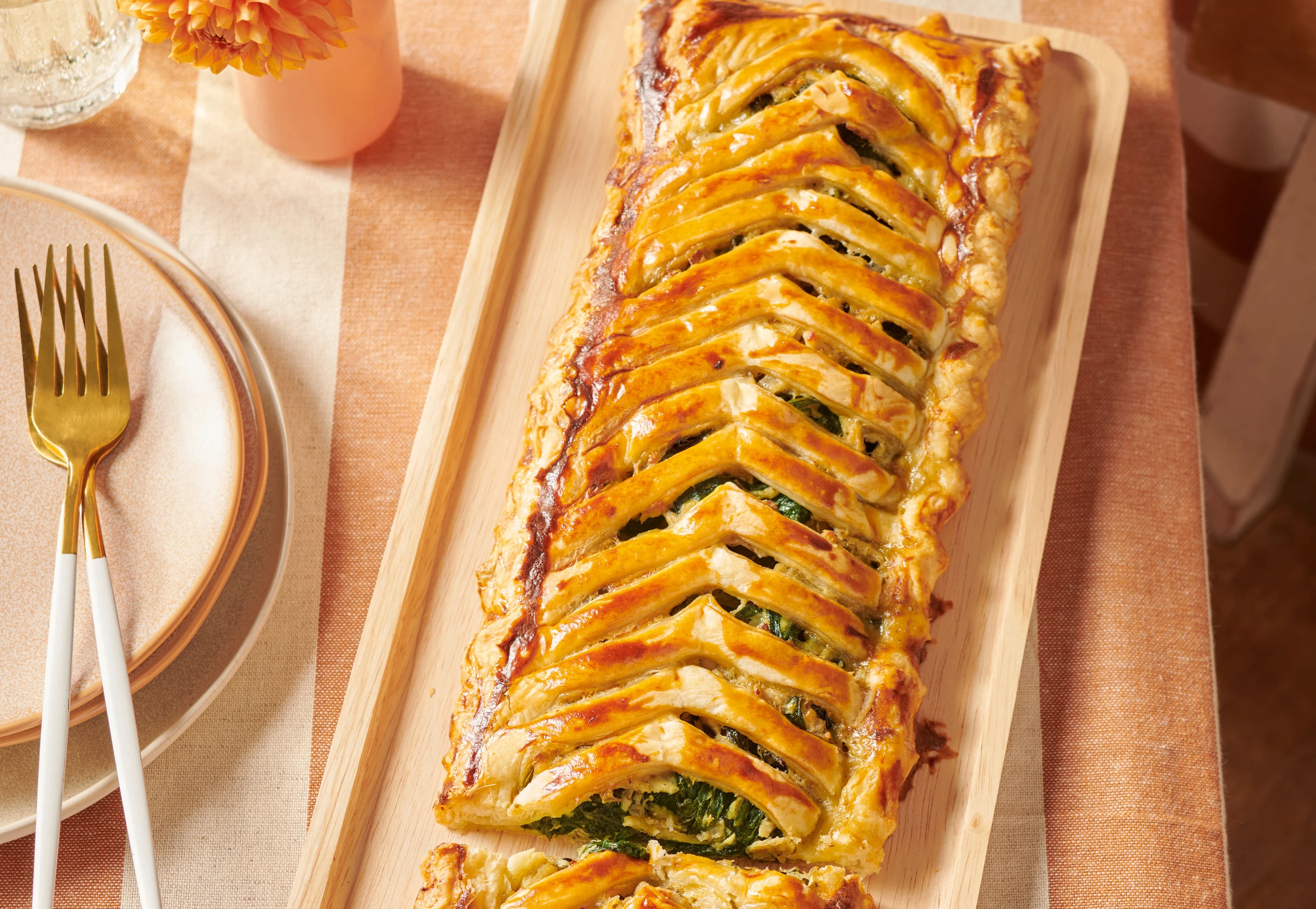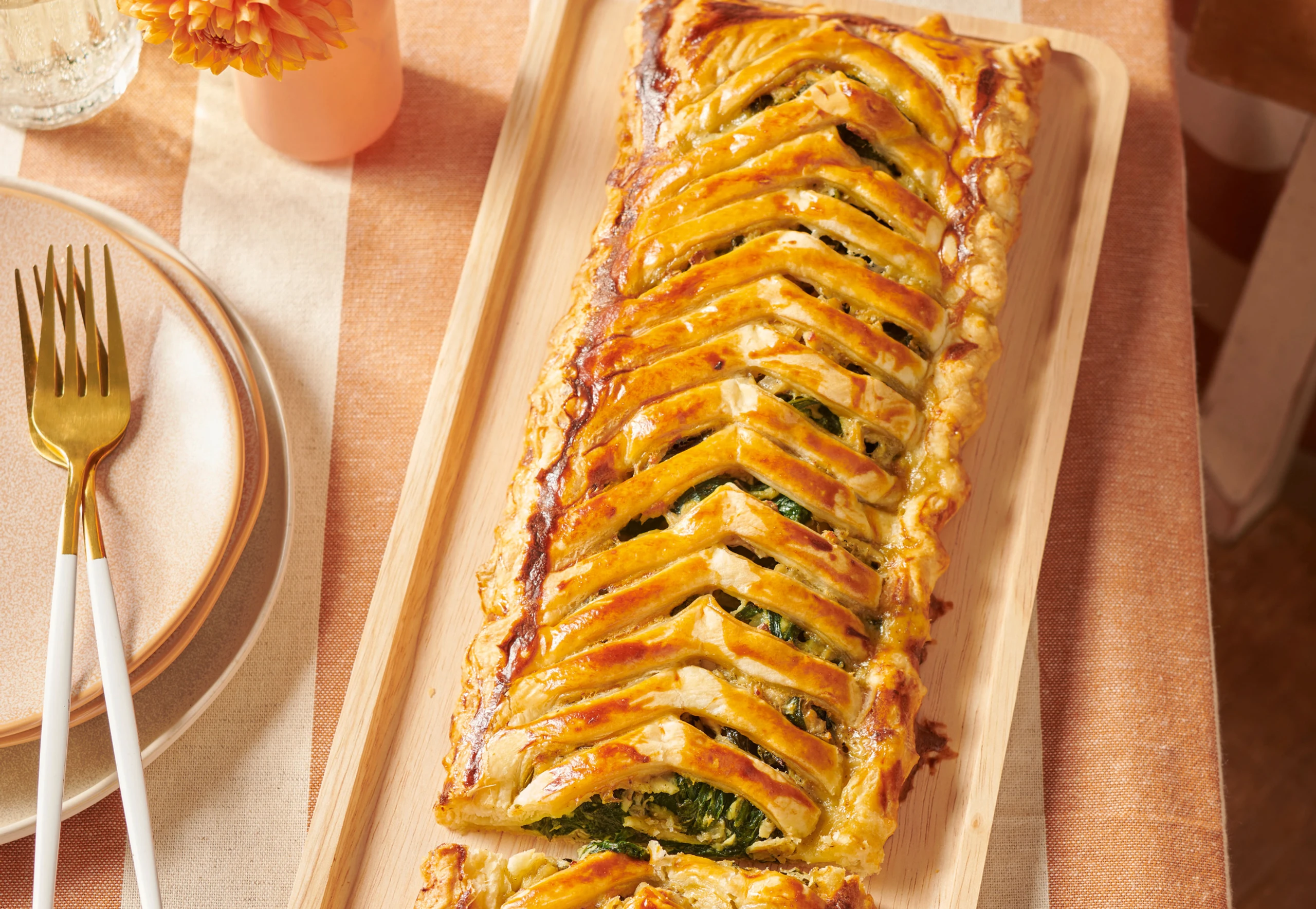 Gefächerter Strudel mit Huhn und Spinat