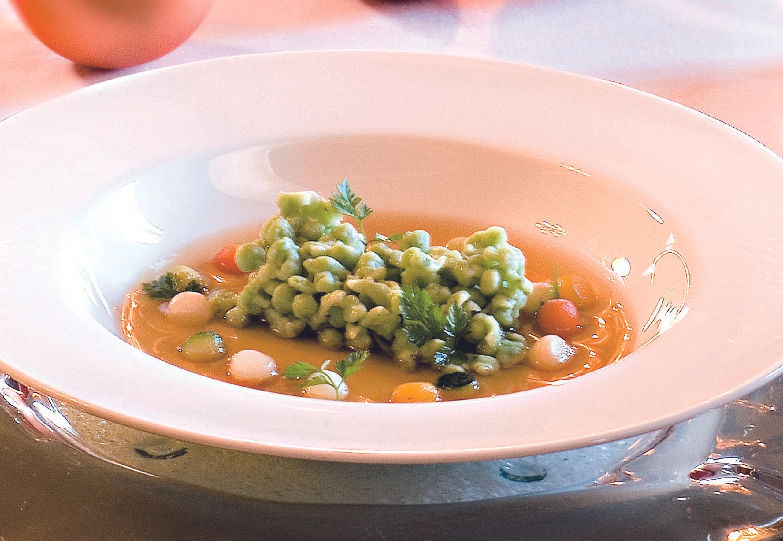- Knöpfle vor dem Servieren in wenig Suppe erwärmen.