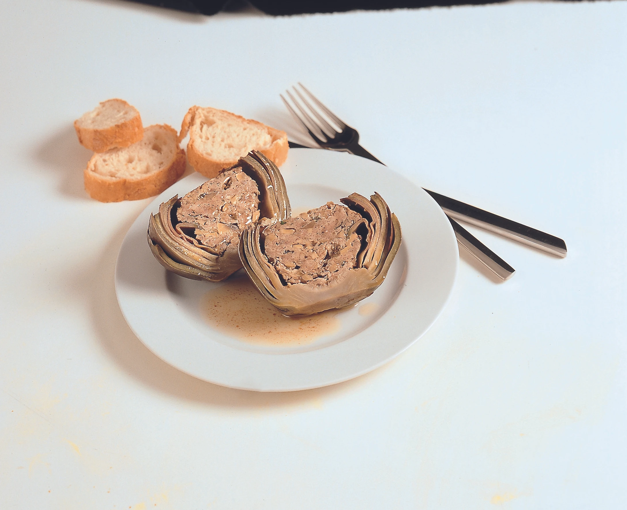 Mit Schwammerln und Faschiertem gefüllte Artischocken