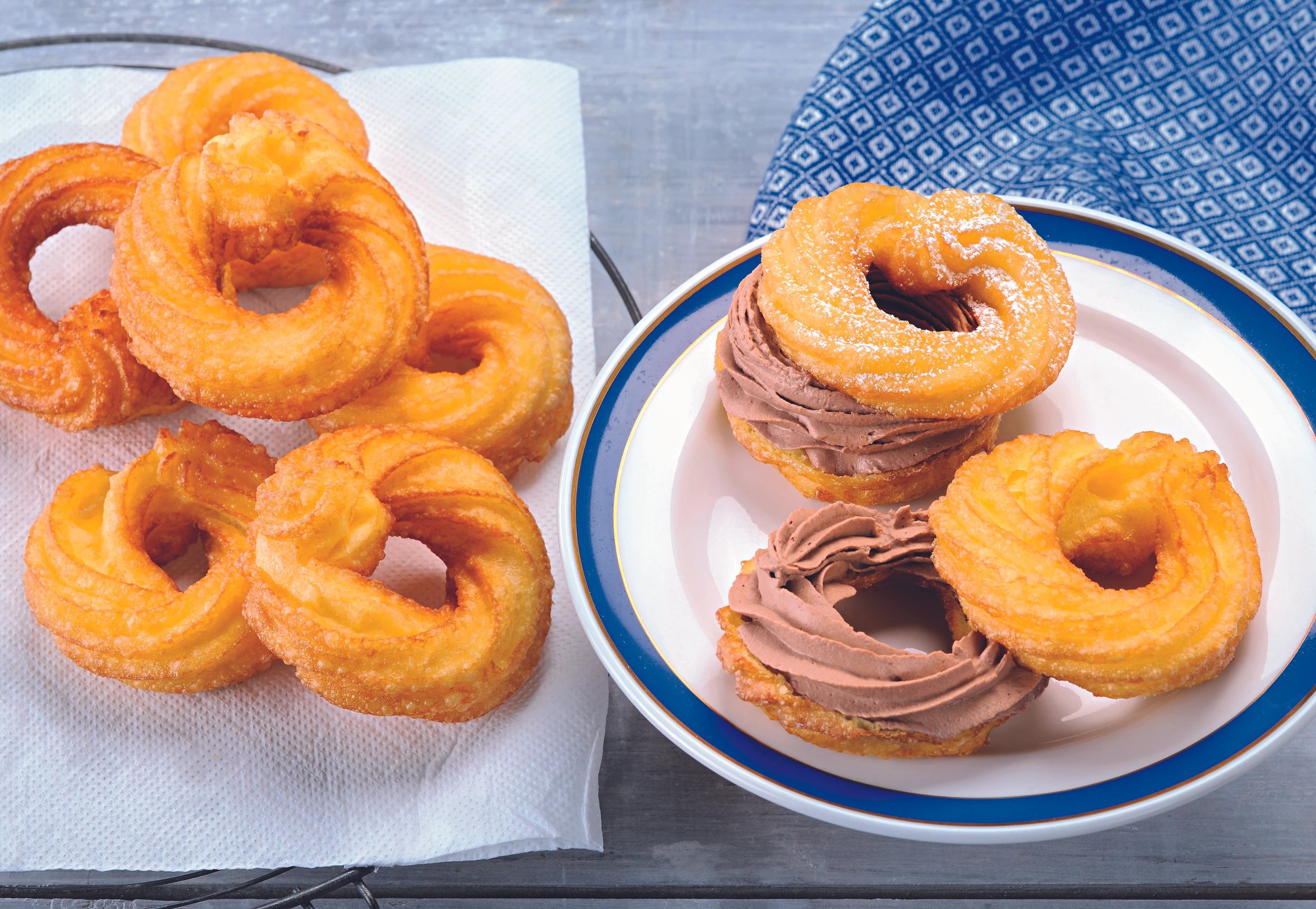 - Ca. 3 Finger hoch Öl auf ca. 160°C erhitzen. Ringe in mehreren Arbeitsgängen backen: Ringe mit der Papierseite nach oben ins Öl legen, dabei eine Papierecke festhalten und die Ringe vom Papier ins Öl gleiten lassen. Ringe ca. 2 Minuten backen, wenden und ca. 2 Minuten fertig backen. Herausheben, abtropfen und auskühlen lassen.