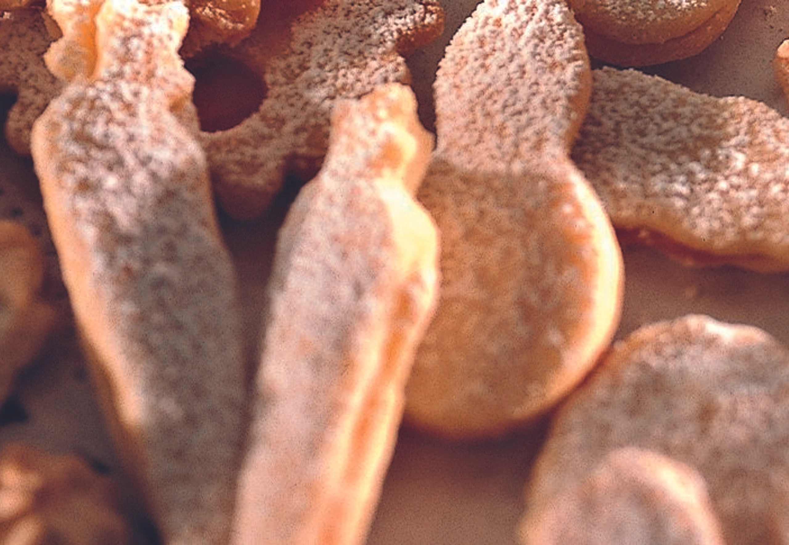 Butterkekse aus dem Rohr nehmen und ca. 1 Stunde auskühlen lassen. Je 2 Kekse mit Ribiselgelee zusammensetzen und mit Staubzucker bestreuen.