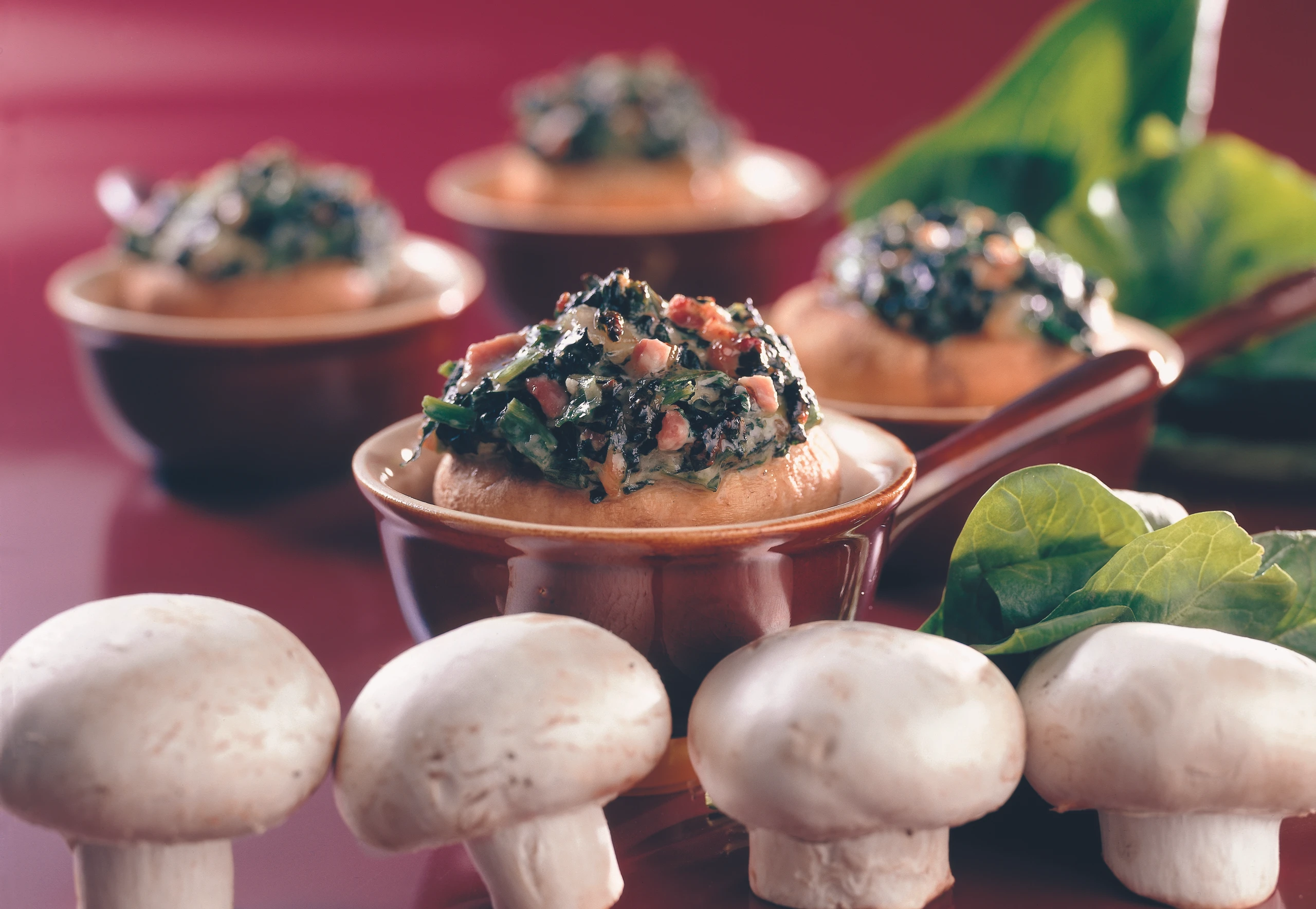 Gebackene Champignons mit Spinat-Schinken-Fülle