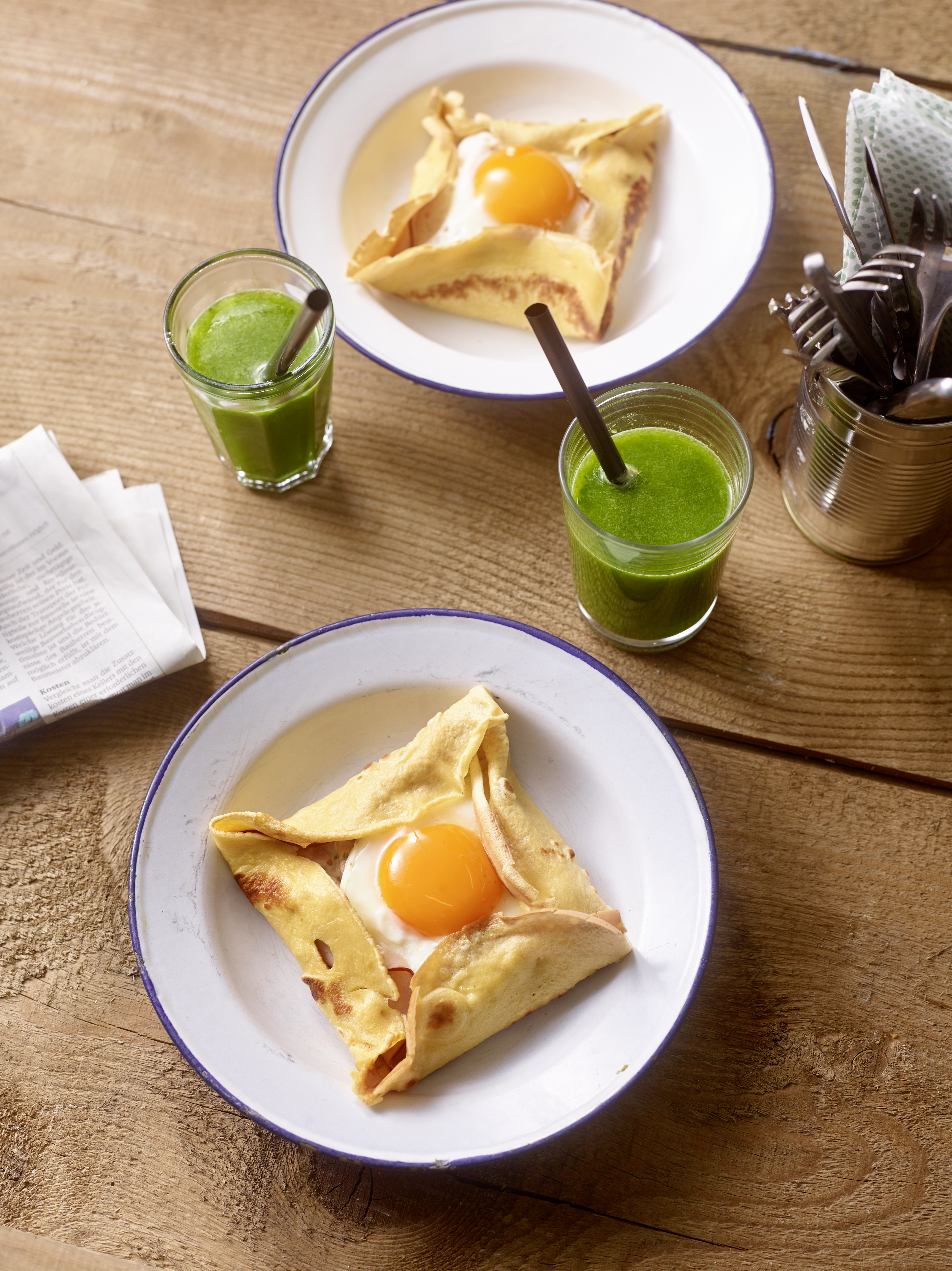 Gefüllte Crêpes mit Speck und Ei
