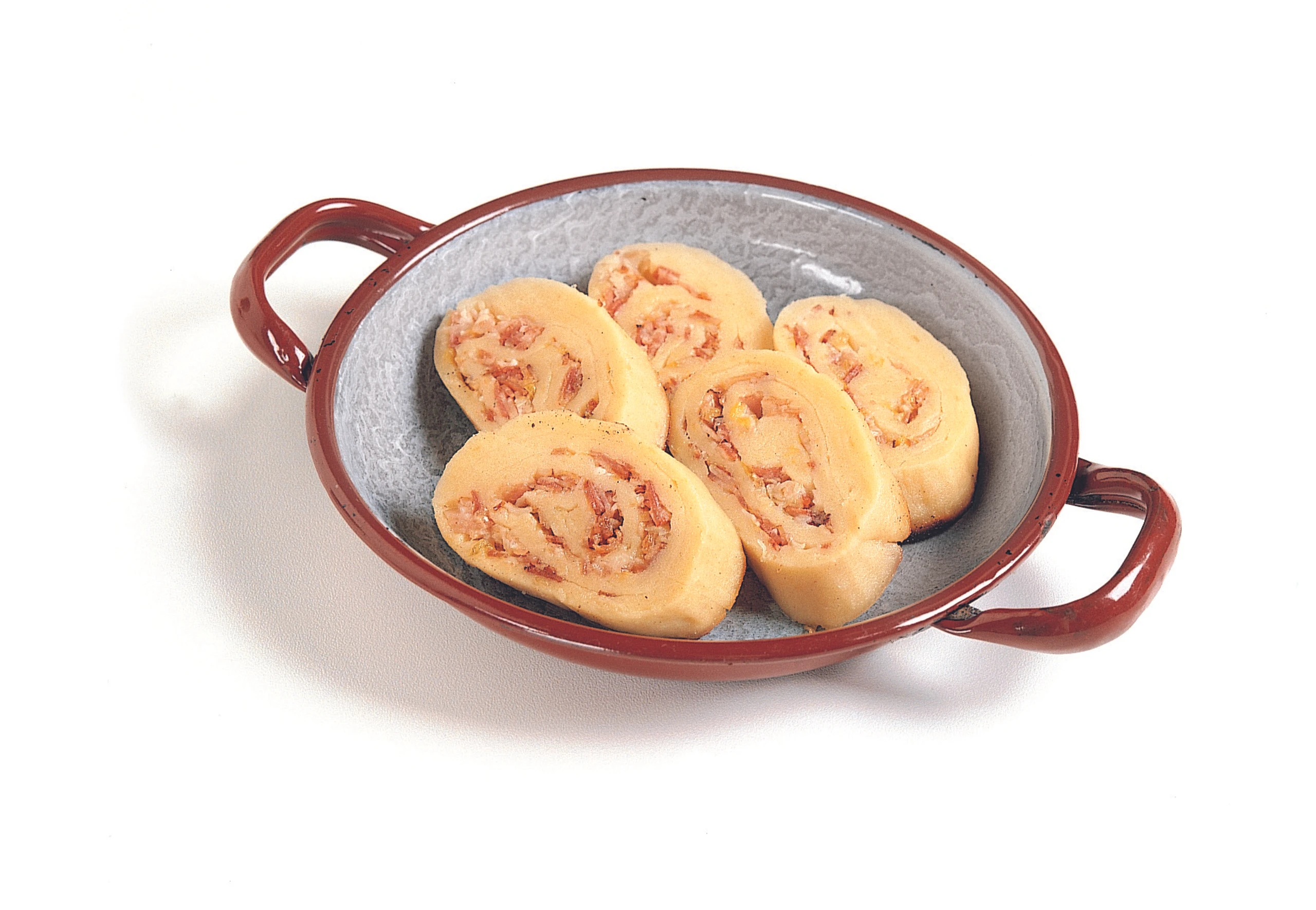 Gefüllte Erdäpfelroulade mit Lauch und Speck