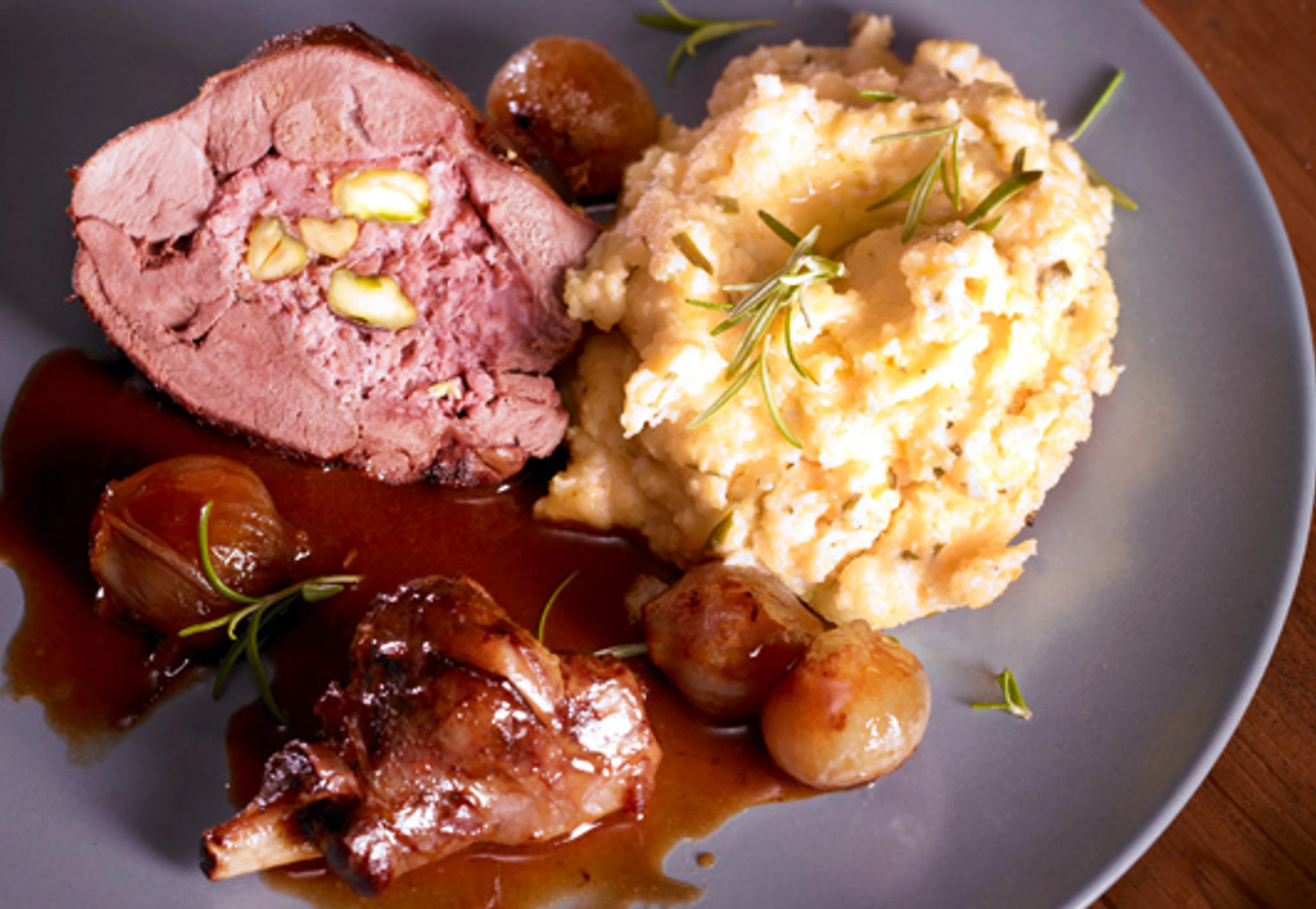 Gefüllte Hasenkeule auf Rosmarinpolenta