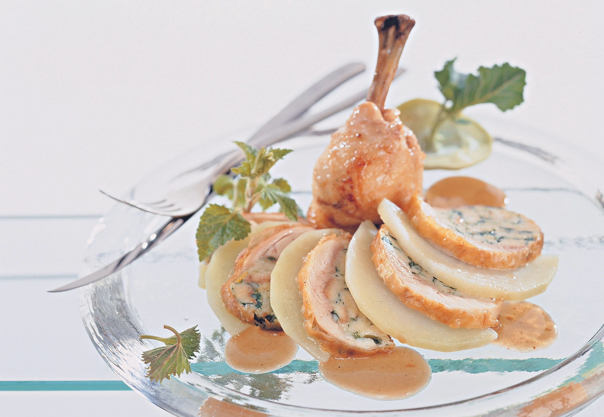 Gefüllte Hühnerkeulen mit Kohlrabigemüse