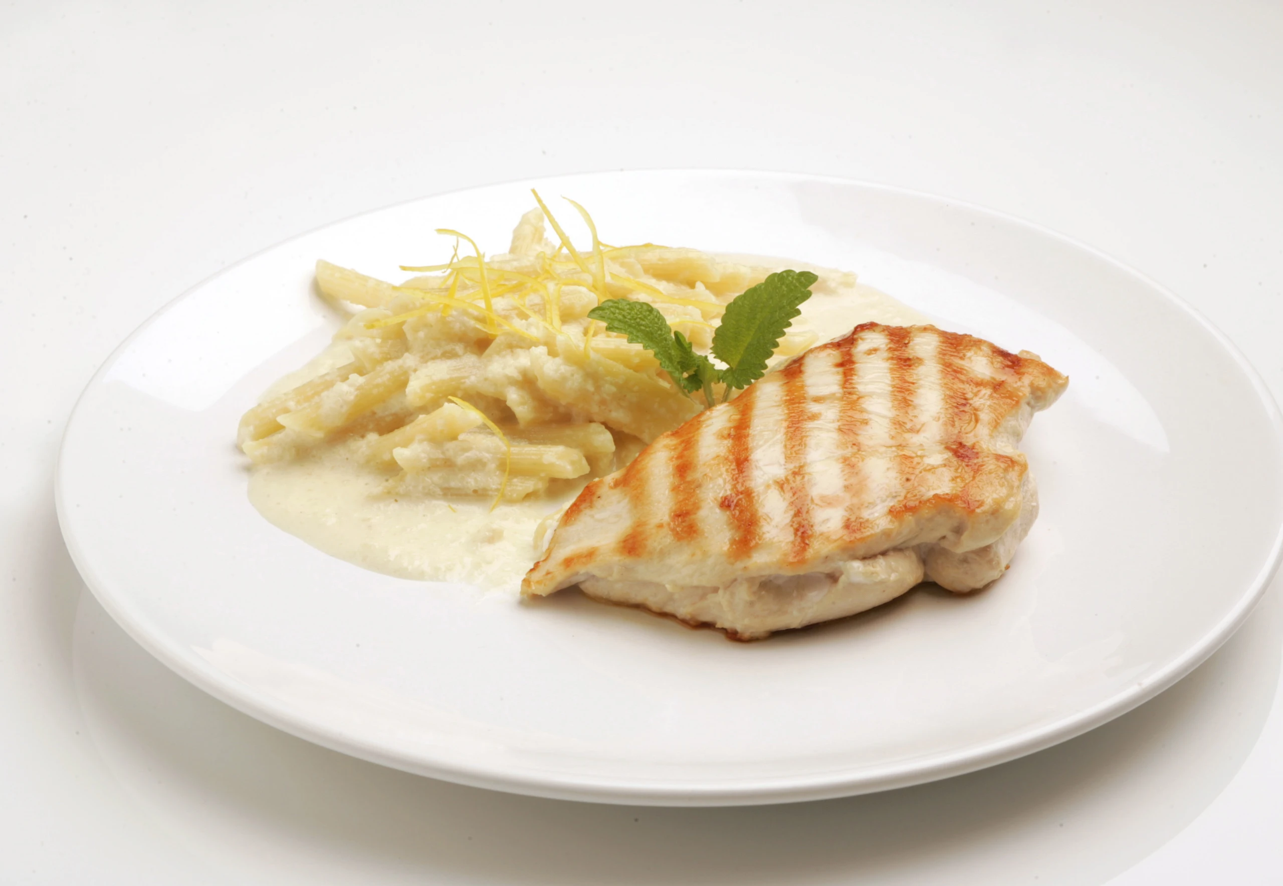 Schnitzerl aus der Marinade nehmen, abtupfen und auf beiden Seiten 3 Minuten grillen. Mit Penne servieren.