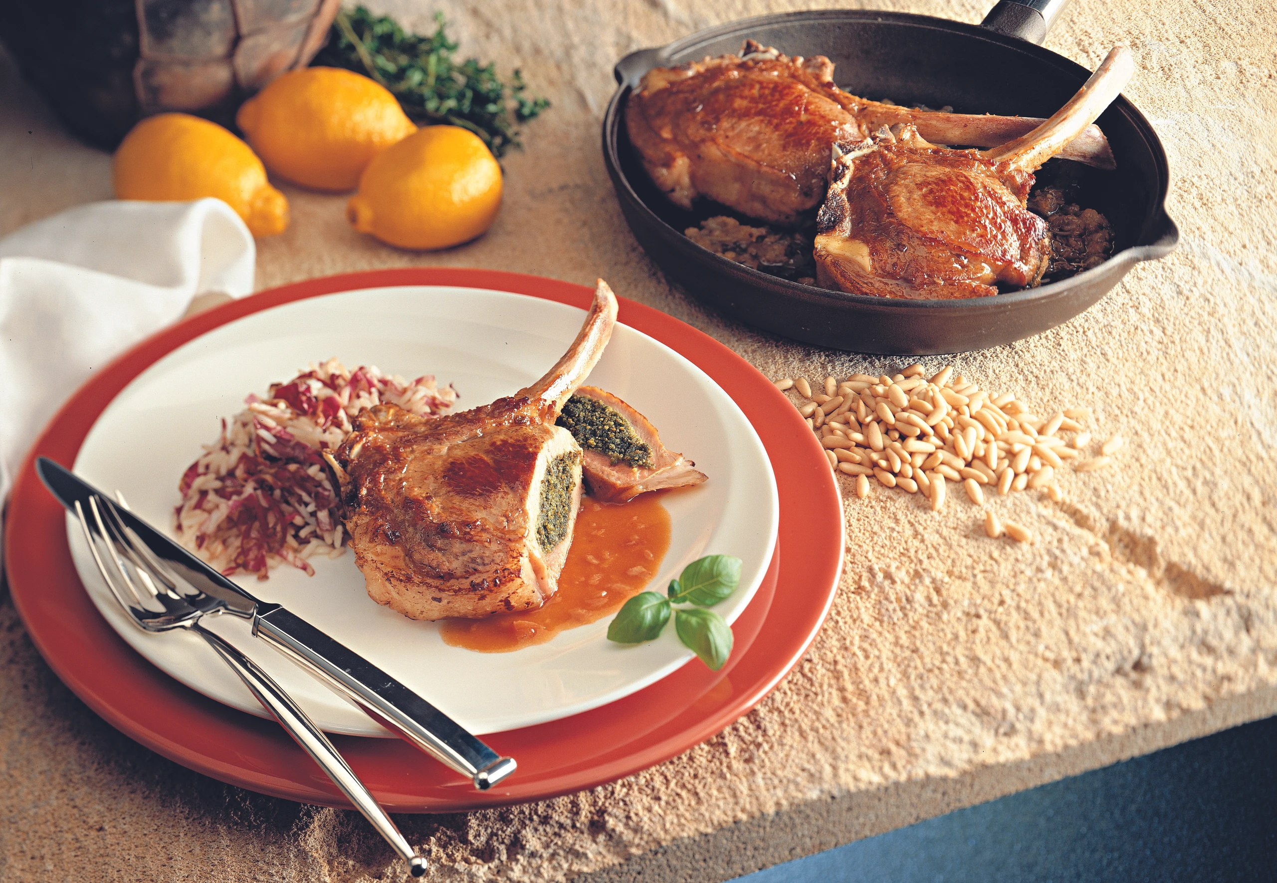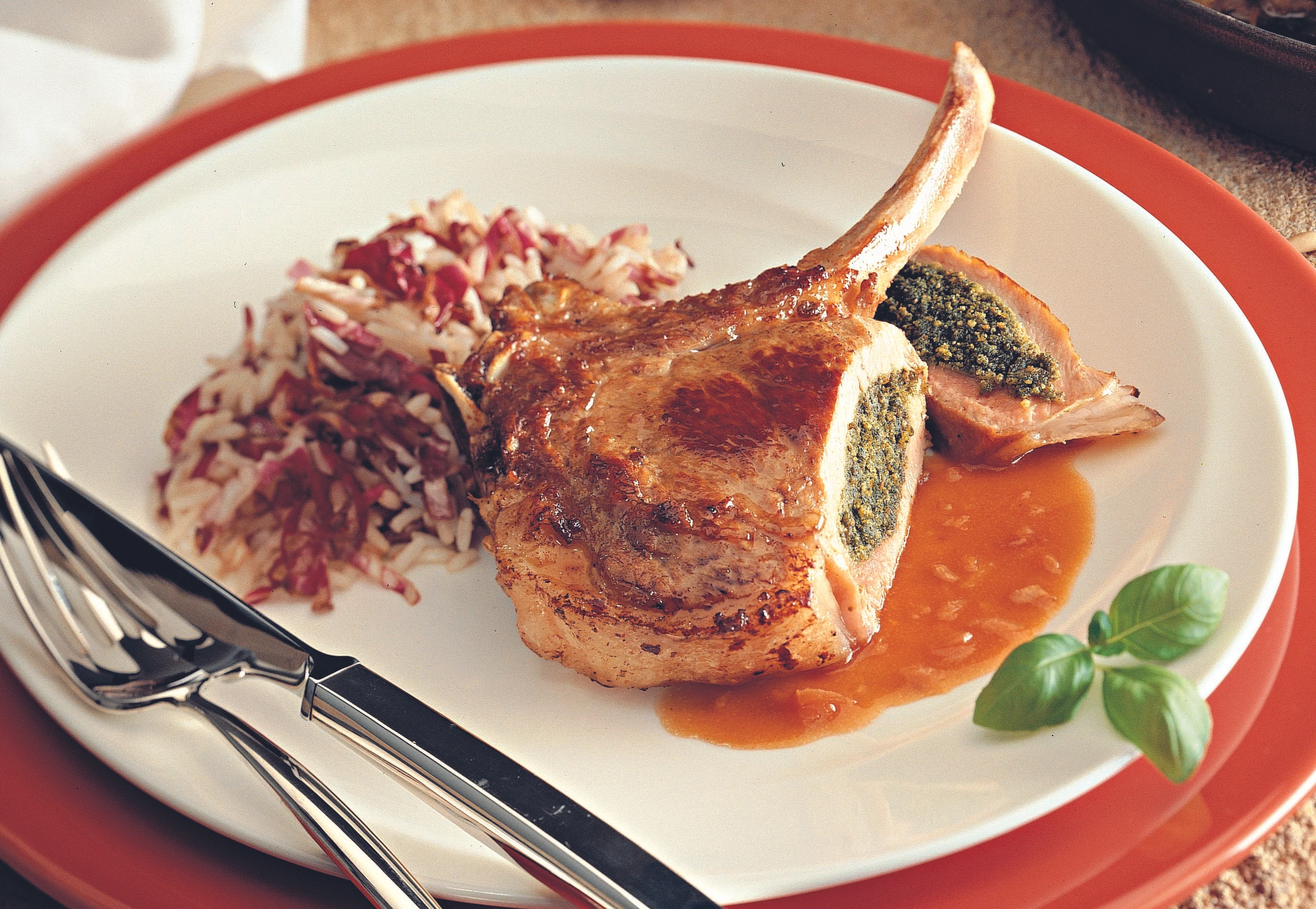 Gefüllte Kalbskoteletts mit Radicchio-Reis