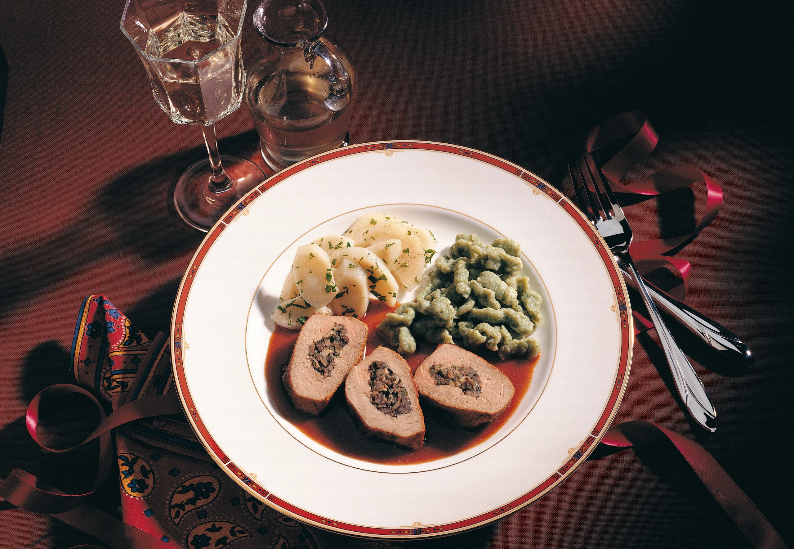 Gefüllte Kalbssteaks mit Portwein-Sauce