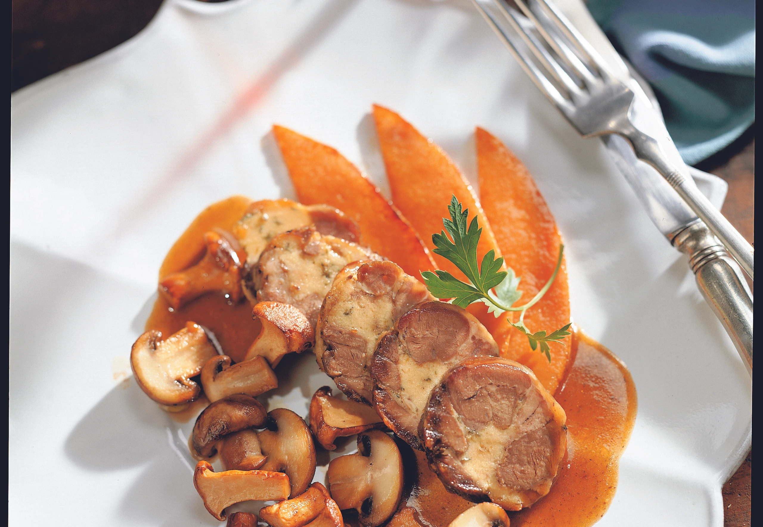 Gefüllte Lammstelze mit Pilz-Kürbis-Gemüse