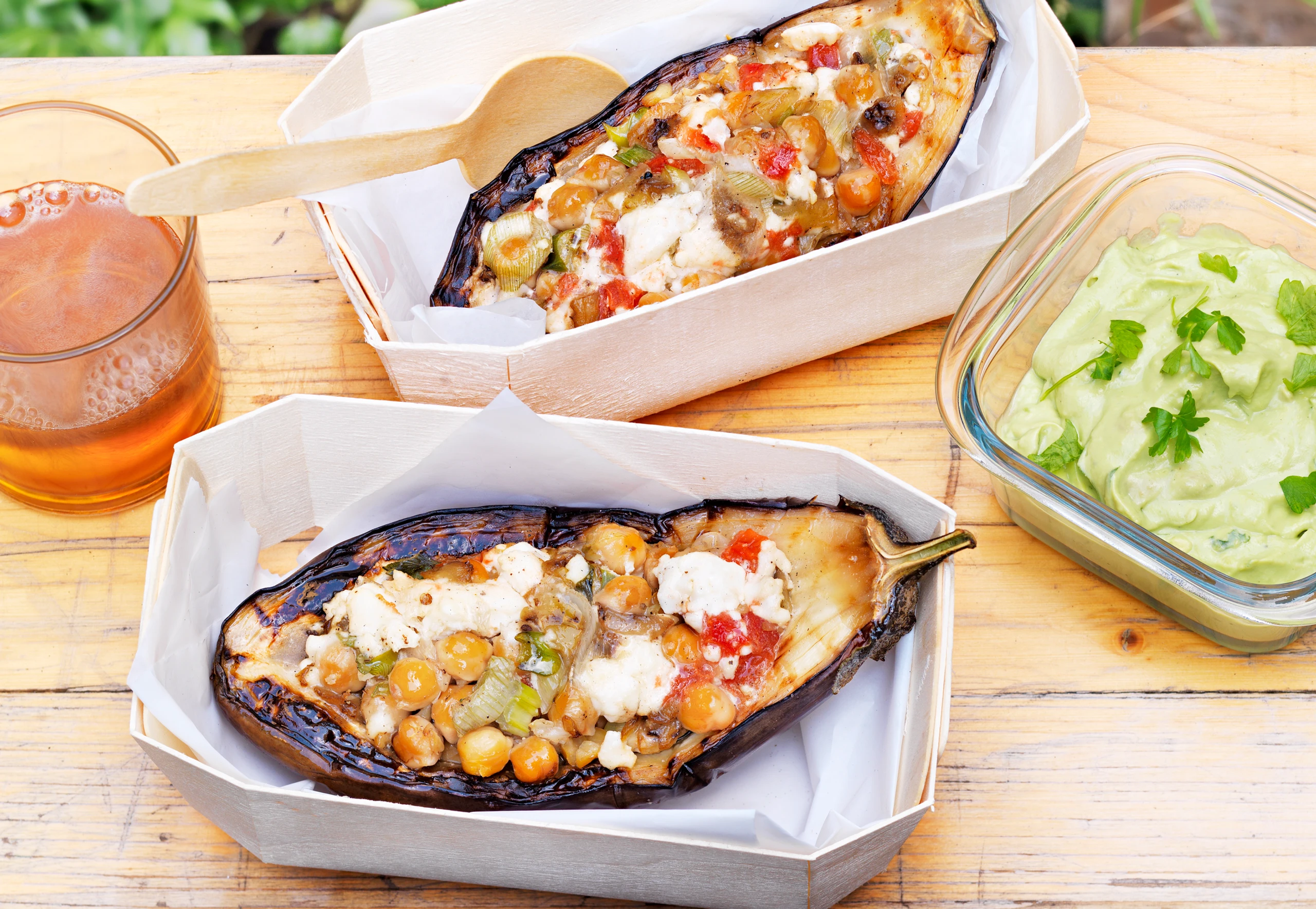 Melanzani auf der ausgehöhlten Seite mit Salz, Pfeffer und Zitronensaft würzen und kurz grillen. Melanzani füllen und auf dem heißen Rost ca. 15 Minuten zugedeckt grillen. Dazu passt Avocado-Sauce.