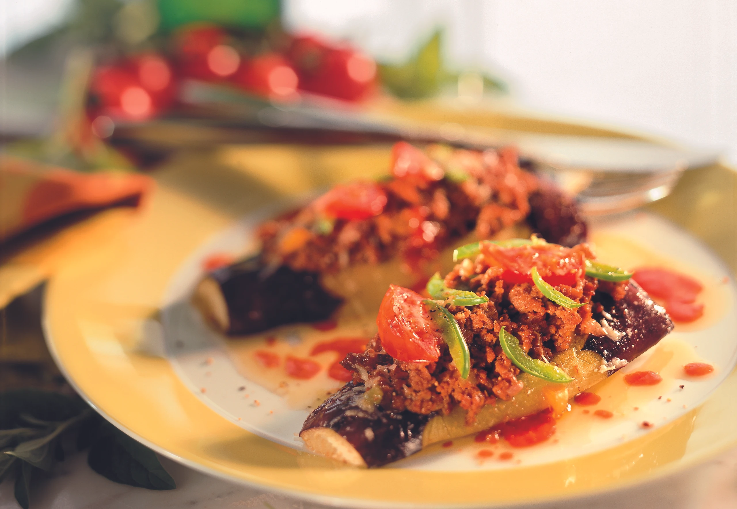 Gefüllte Melanzani mit Lammfaschiertem und Paprika