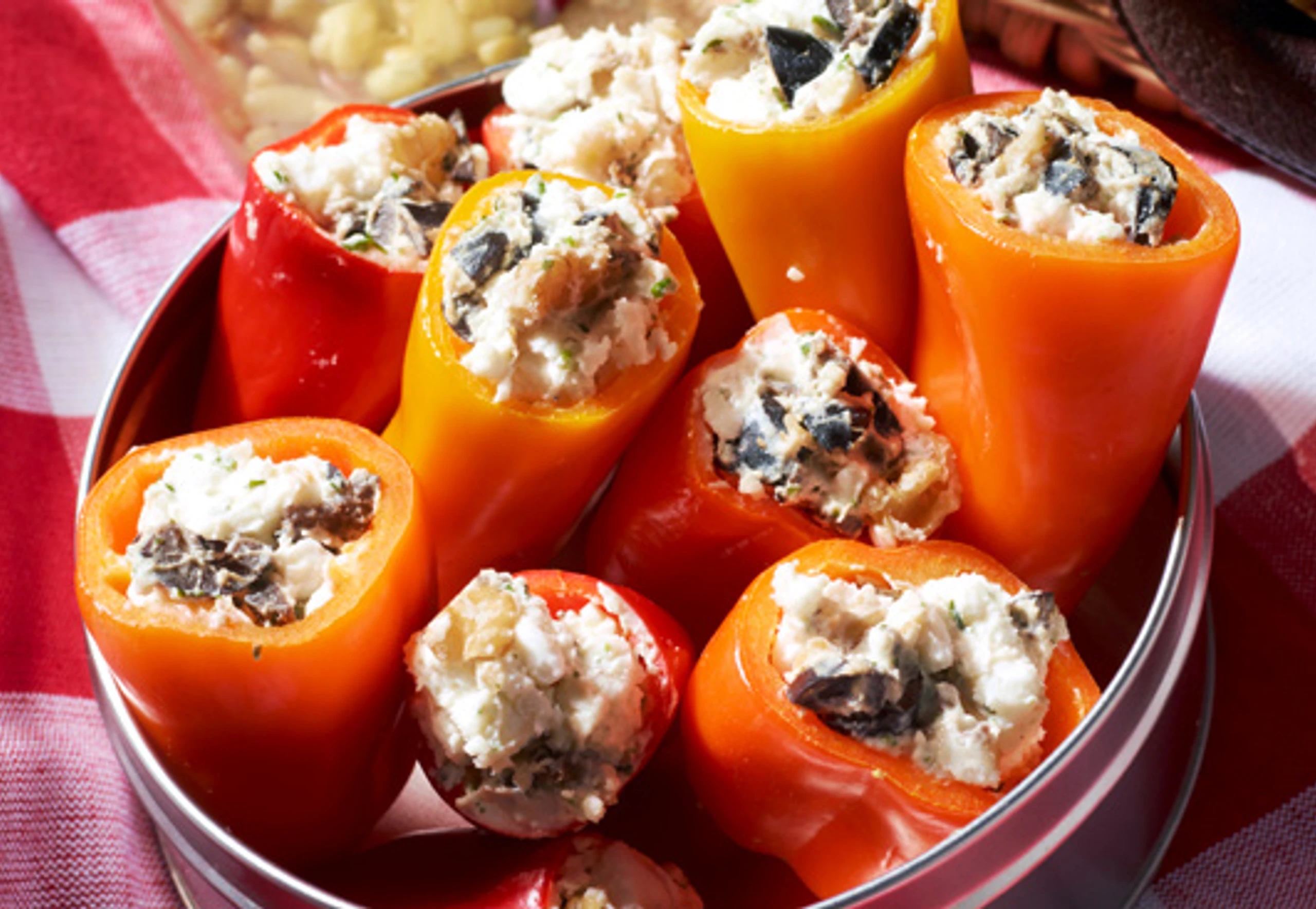 - Creme mit Salz, Pfeffer und 1 EL Olivenöl abschmecken.Kappen von den Paprika abschneiden, Strunk und Kerne herauslösen. Paprika mit der Käsecreme füllen. Am besten in einen verschließbaren Plastikbehälter geben.