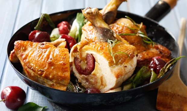 Gefüllte Perlhuhnbrüstchen mit Kirschengemüse