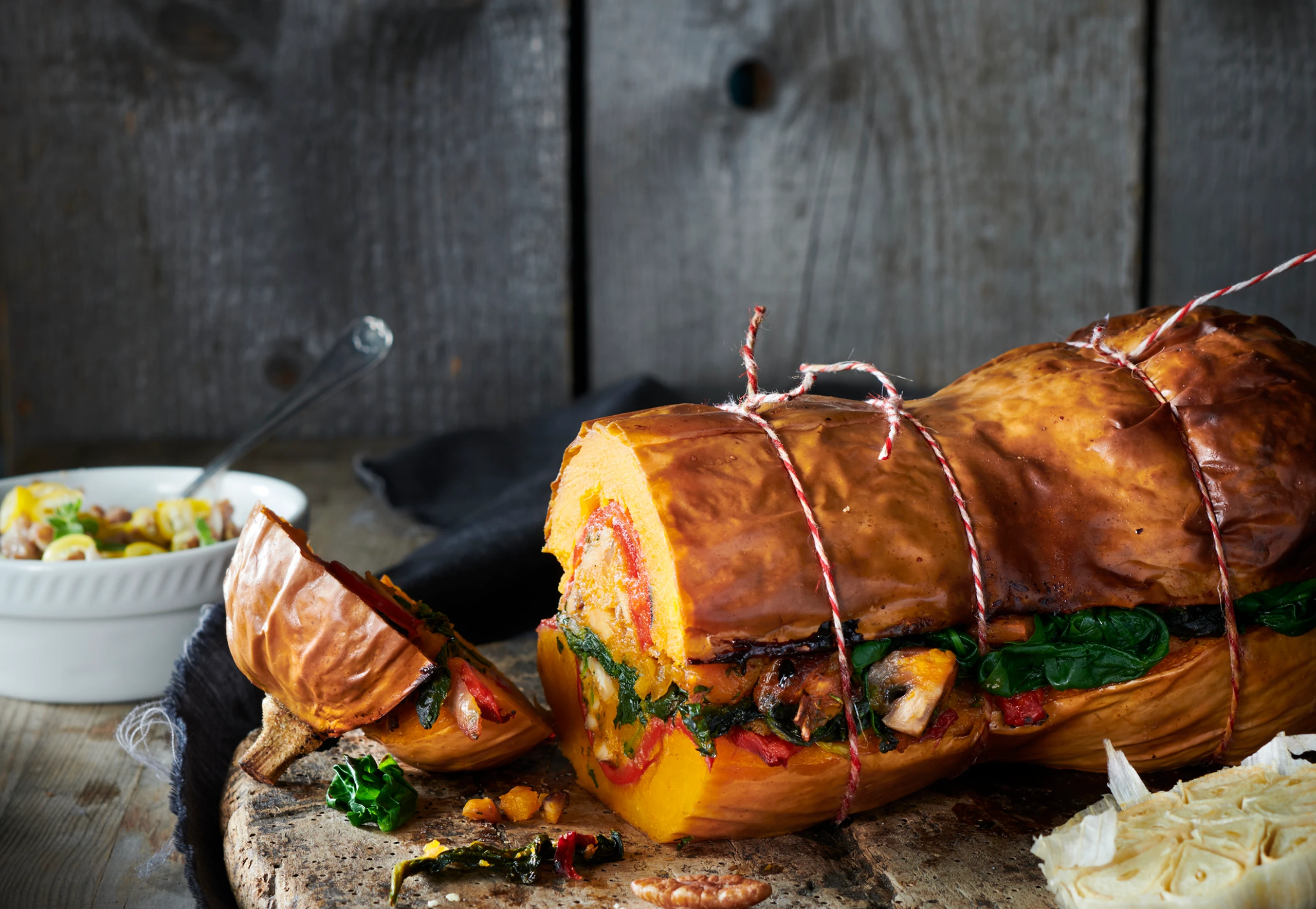 Gefüllter Butternusskürbis mit Knoblauchpesto