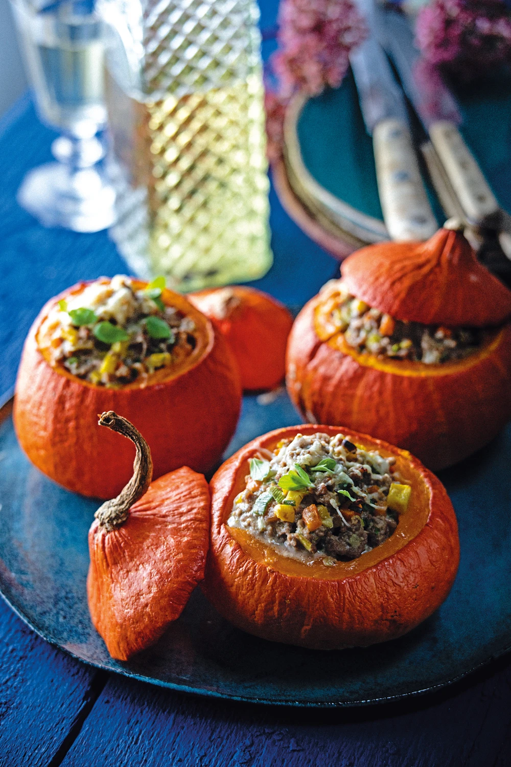 Gefüllter Kürbis mit Faschiertem und Wurzelgemüse
