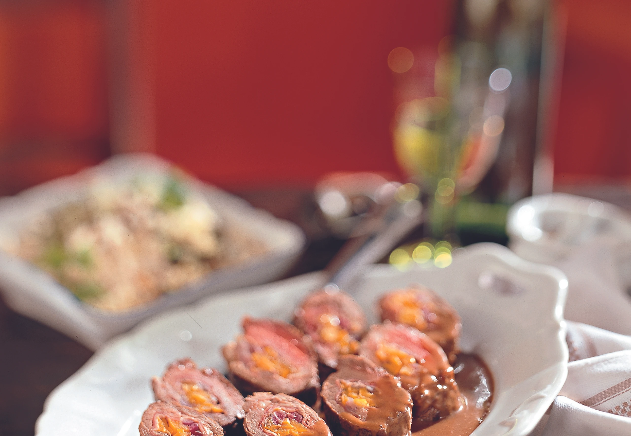 Rouladen in die Sauce legen und erwärmen, vor dem Anrichten Spagat entfernen. Rouladen in Scheiben schneiden und mit Körndl-Reis anrichten.