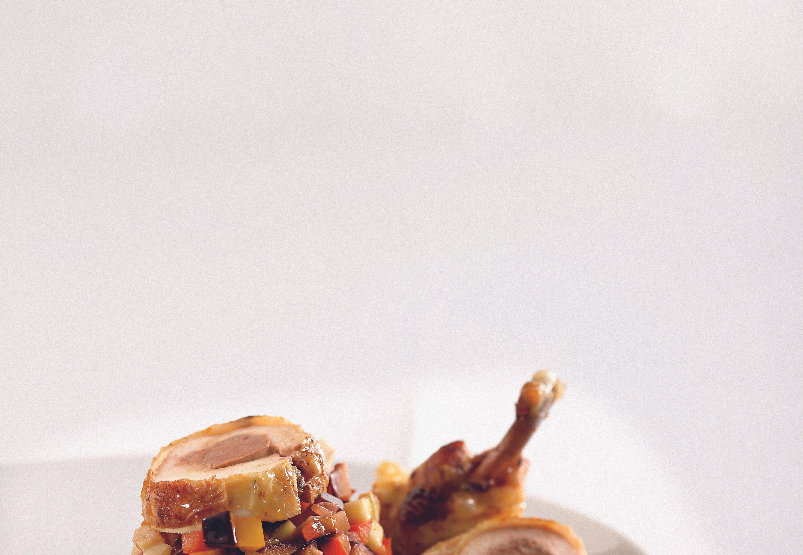 Gefülltes Hühnerbrüsterl auf Gemüsetatar