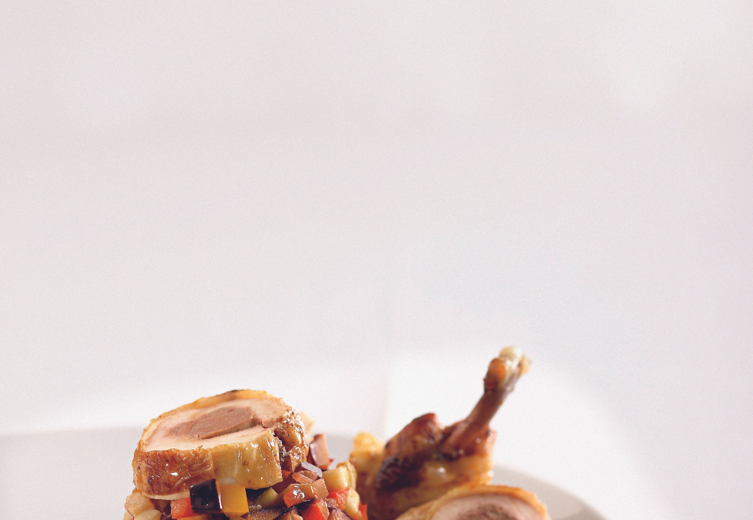 Hühnerleber halbieren. In jede Hühnerbrust seitlich eine Tasche schneiden und mit einem Stück Leber füllen. Fleisch salzen und pfeffern, in Olivenöl auf der Hautseite anbraten. Zudecken und bei mittlerer Hitze knusprig braten (nicht wenden, dauert ca. 15 Minuten).