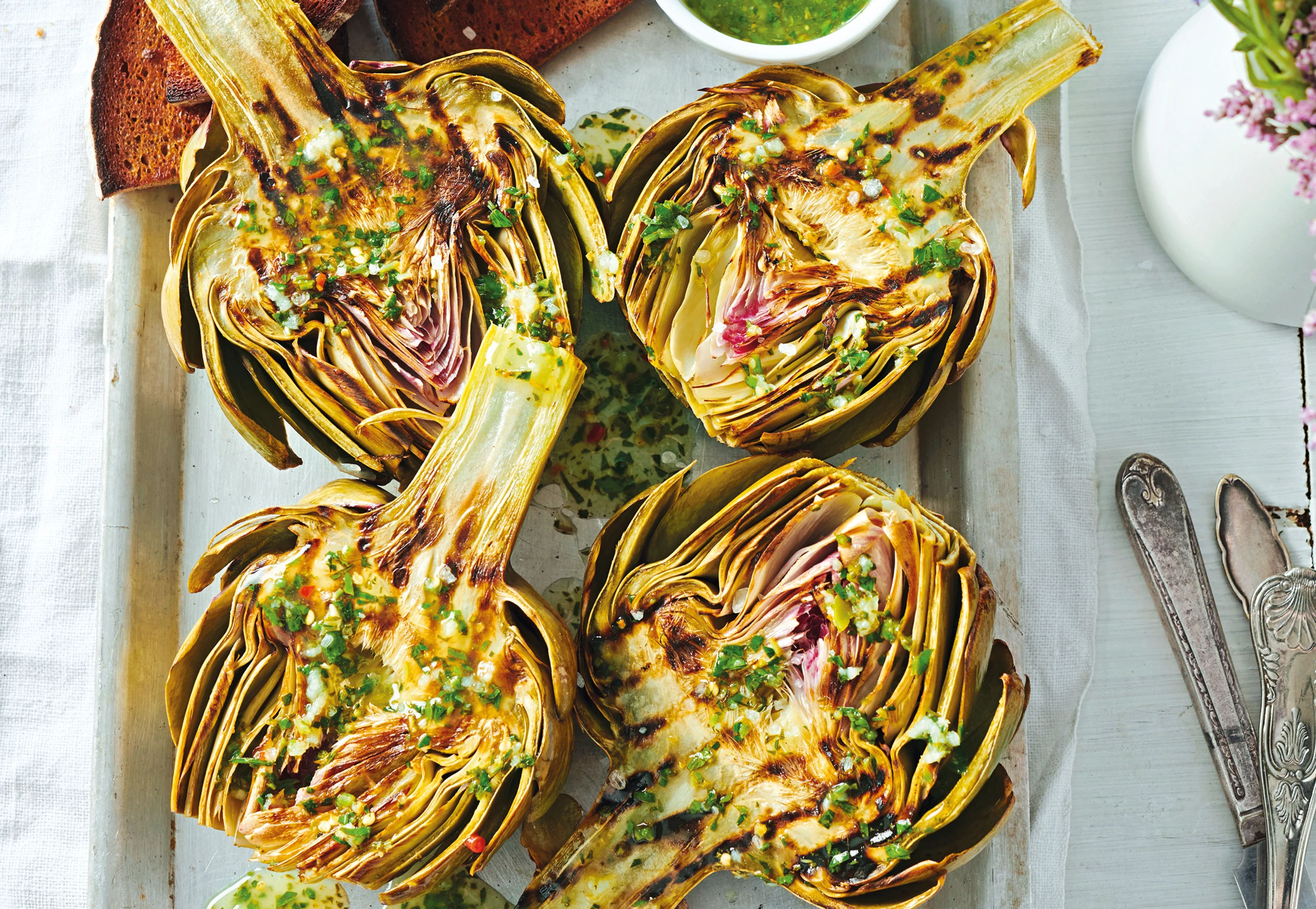 Gegrillte Artischocken mit Zitronen-Kräuterfond