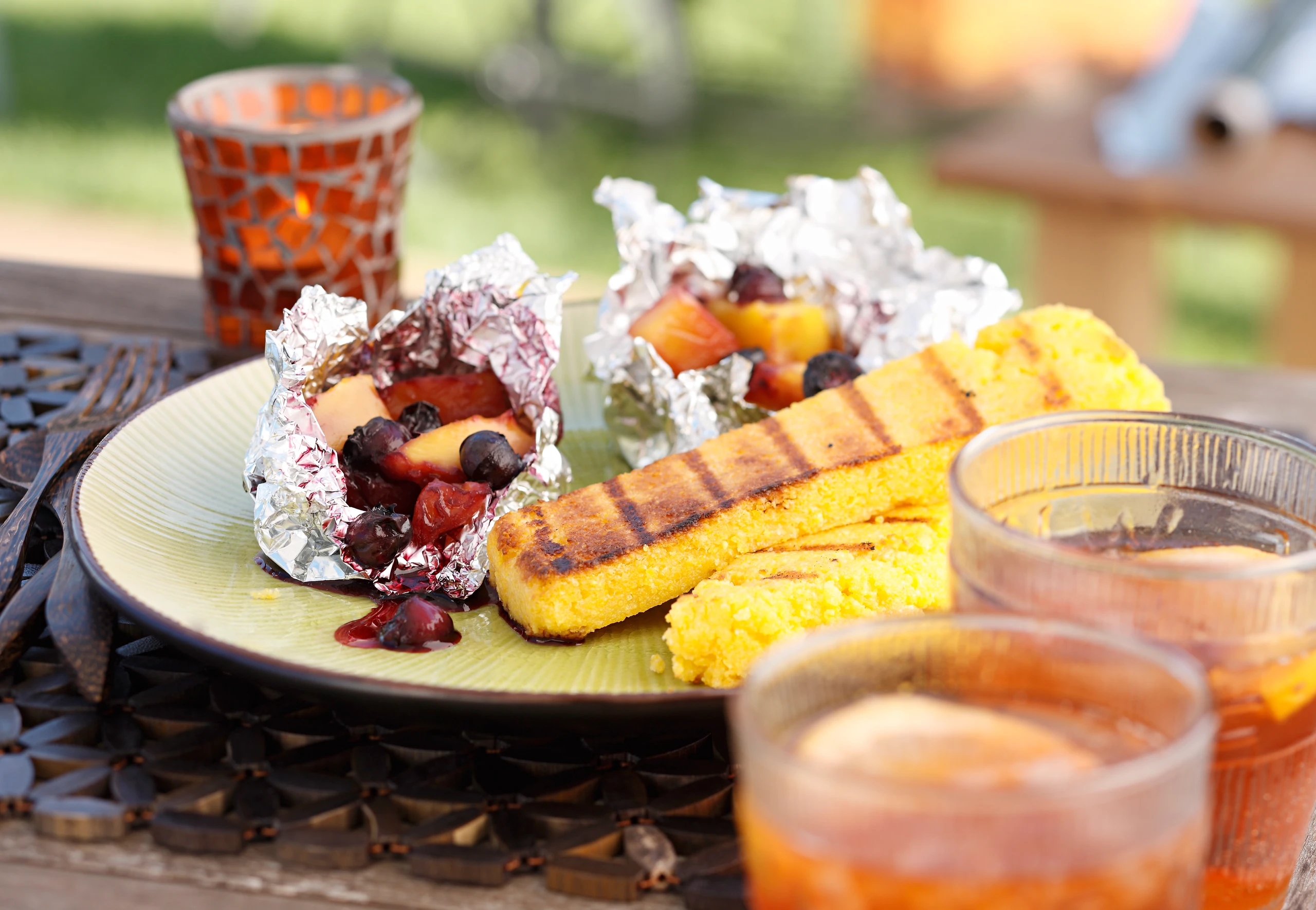 Gegrillte Kokos-Polenta mit Fruchtsalat