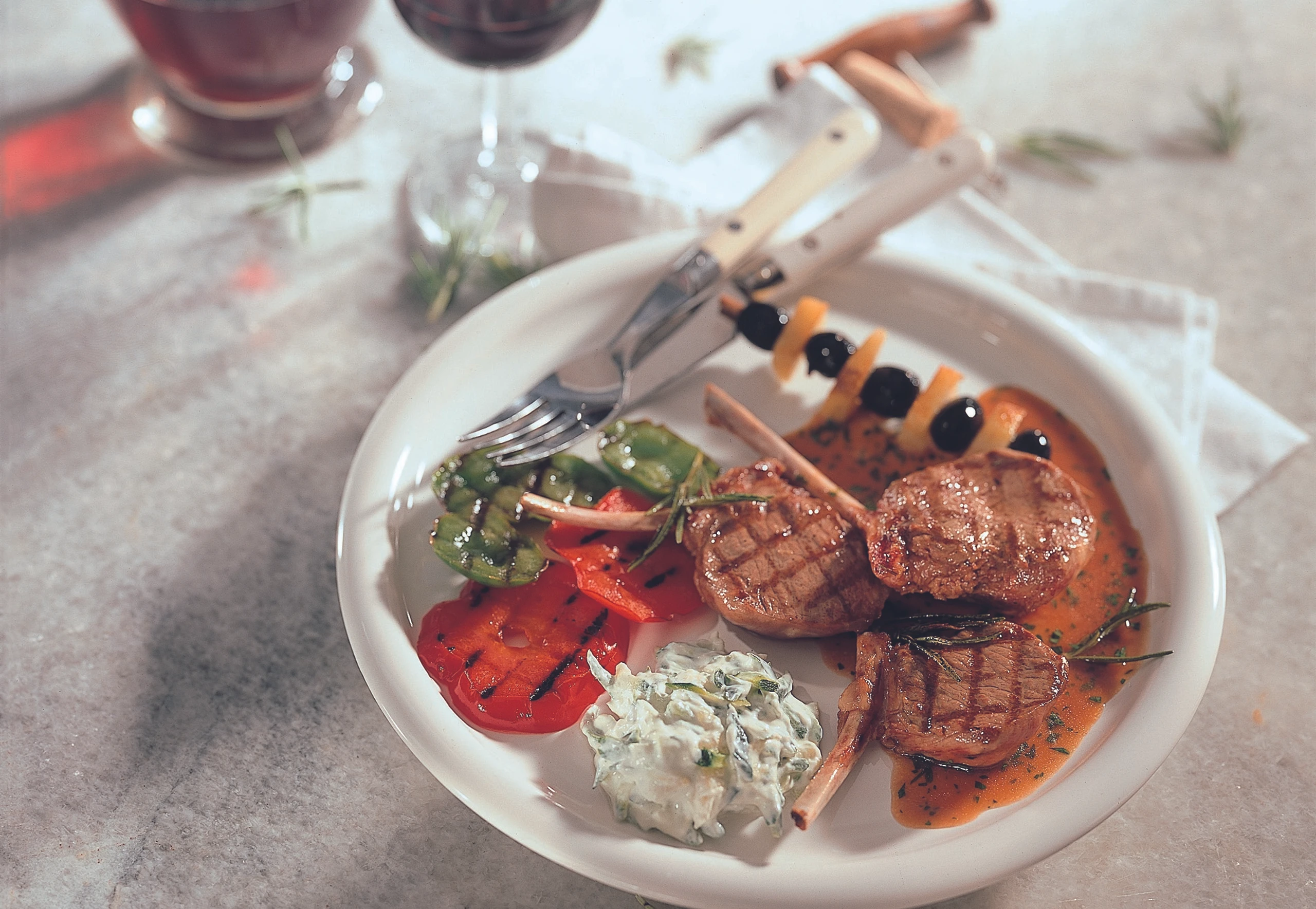 Gegrillte Lammkoteletts mit Zucchini-Tsatsiki