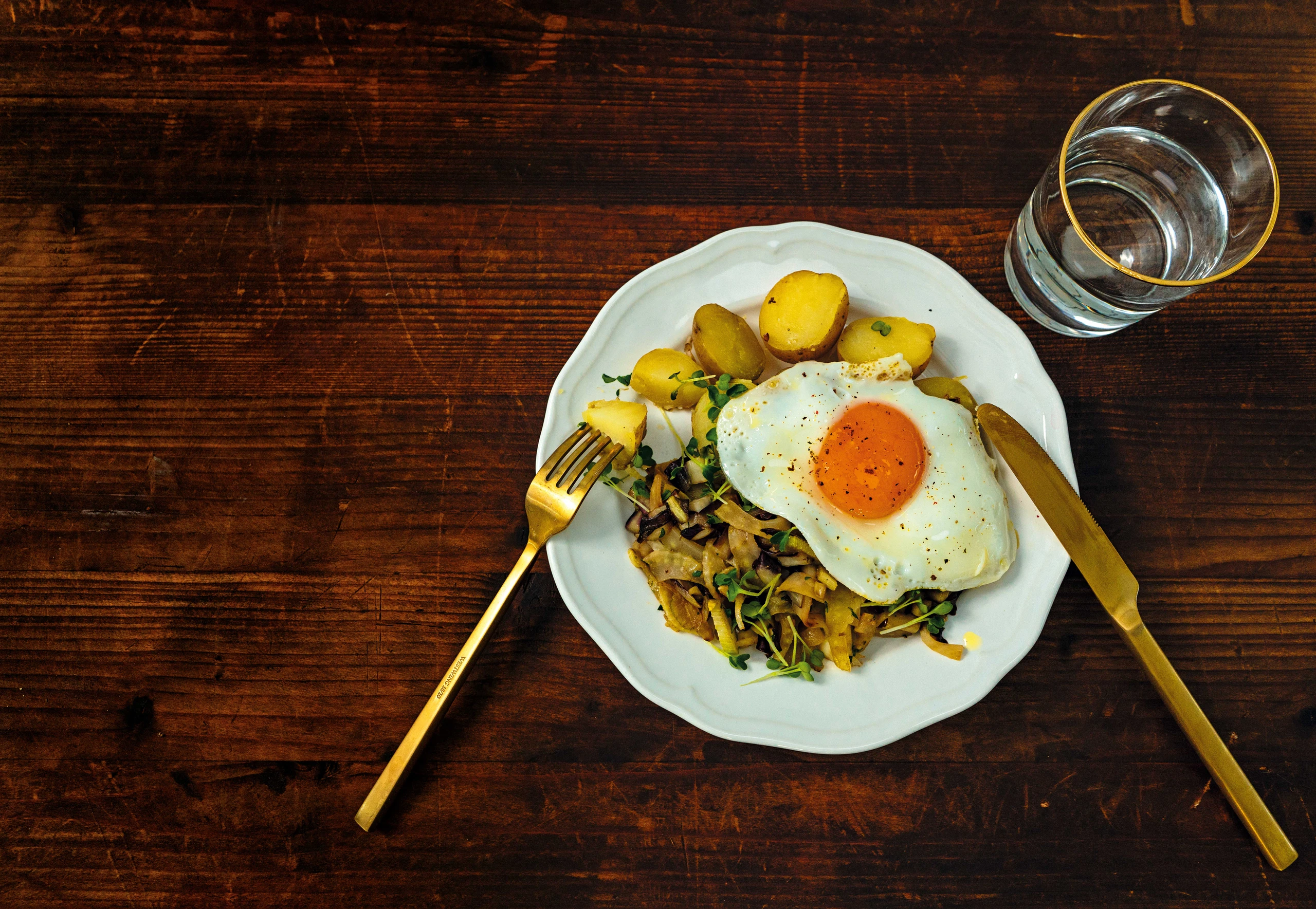 Gekochte Erdäpfel mit Fenchel-Radicchiosalat und Spiegelei