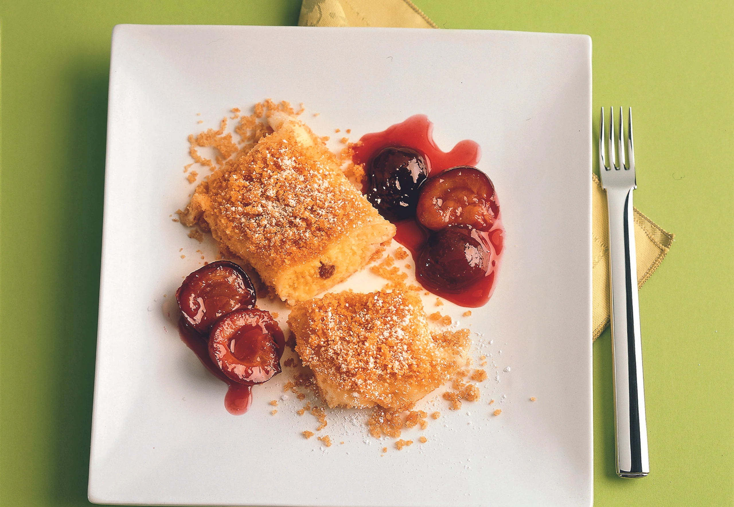 Für die Brösel Butter schmelzen, Brösel und Zucker zugeben und goldgelb rösten. Strudeln aus dem Wasser heben, gut abtropfen lassen und in den Bröseln wälzen. Strudeln mit Staubzucker bestreuen und mit Zwetschkenröster servieren.