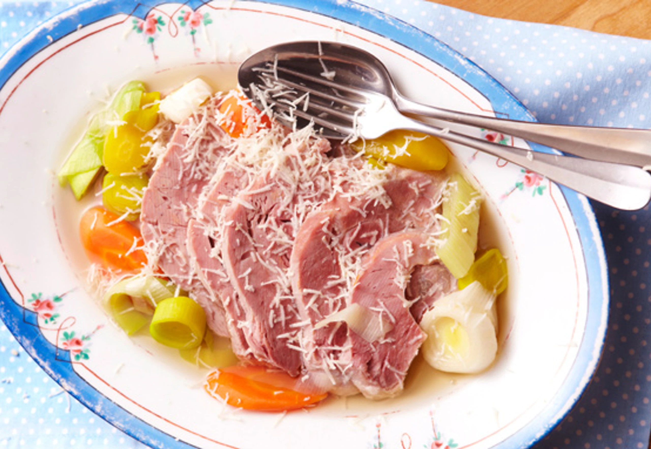 - Fleisch und Gemüse aus dem Fond nehmen. Gemüse in Scheiben schneiden. Fond mit Salz abschmecken. Fleisch in Scheiben schneiden, mit Fond und Gemüse anrichten, mit frisch gerissenem Kren servieren. Als Beilage passen am besten Salzerdäpfel.