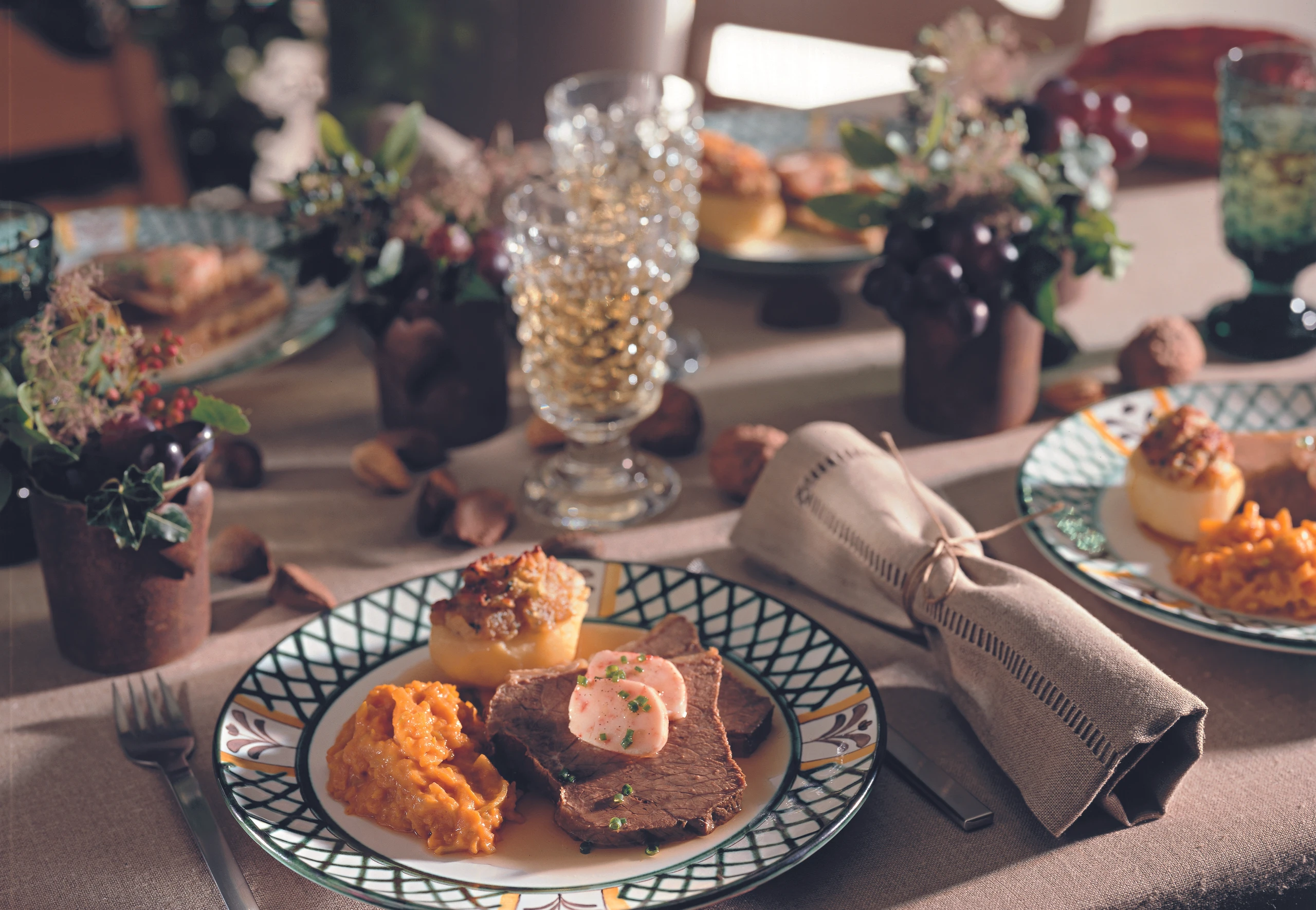 Gekochtes Rindfleisch mit Mark, Grammel-Erdäpfeln und Paprikakürbis