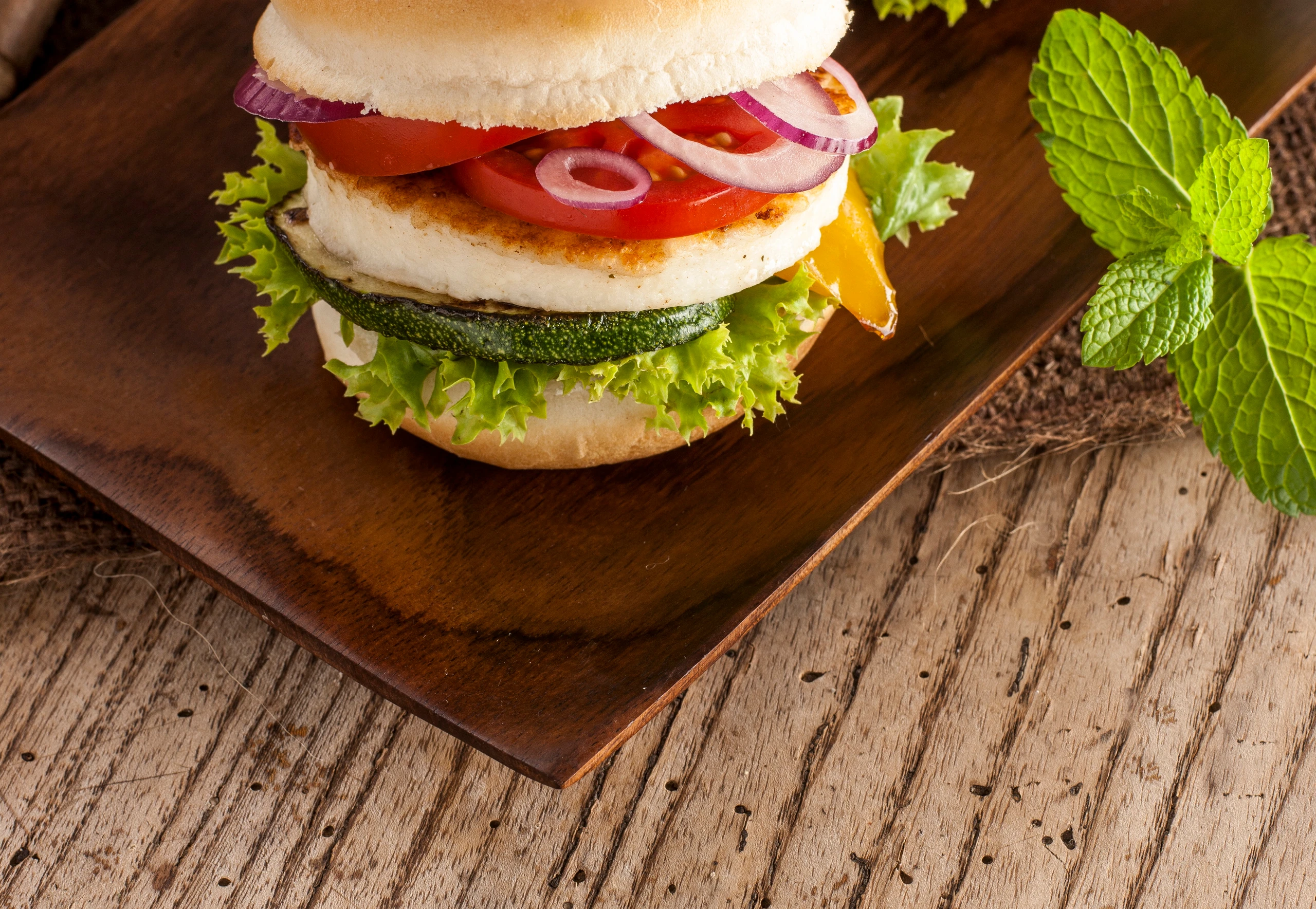 Weckerln horizontal durchschneiden, mit Salat, Zucchini, Paprika, Halloumi, Paradeisern und Zwiebeln belegen. Deckel darauf setzen und behutsam andrücken. Burger am besten mit süßer Chilisauce servieren.