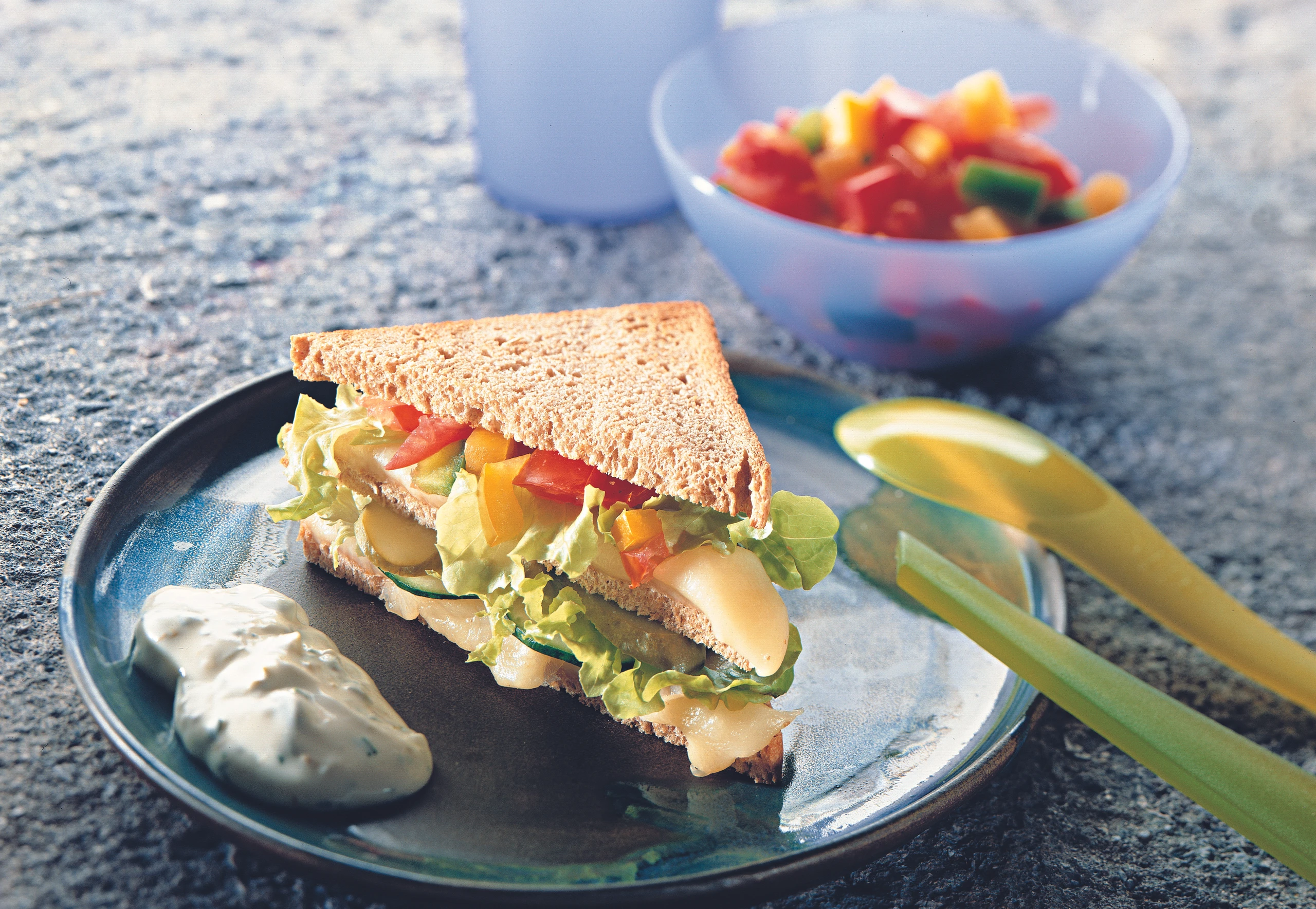 Gemüse-Käse-Toasts mit Joghurt-Senfsauce